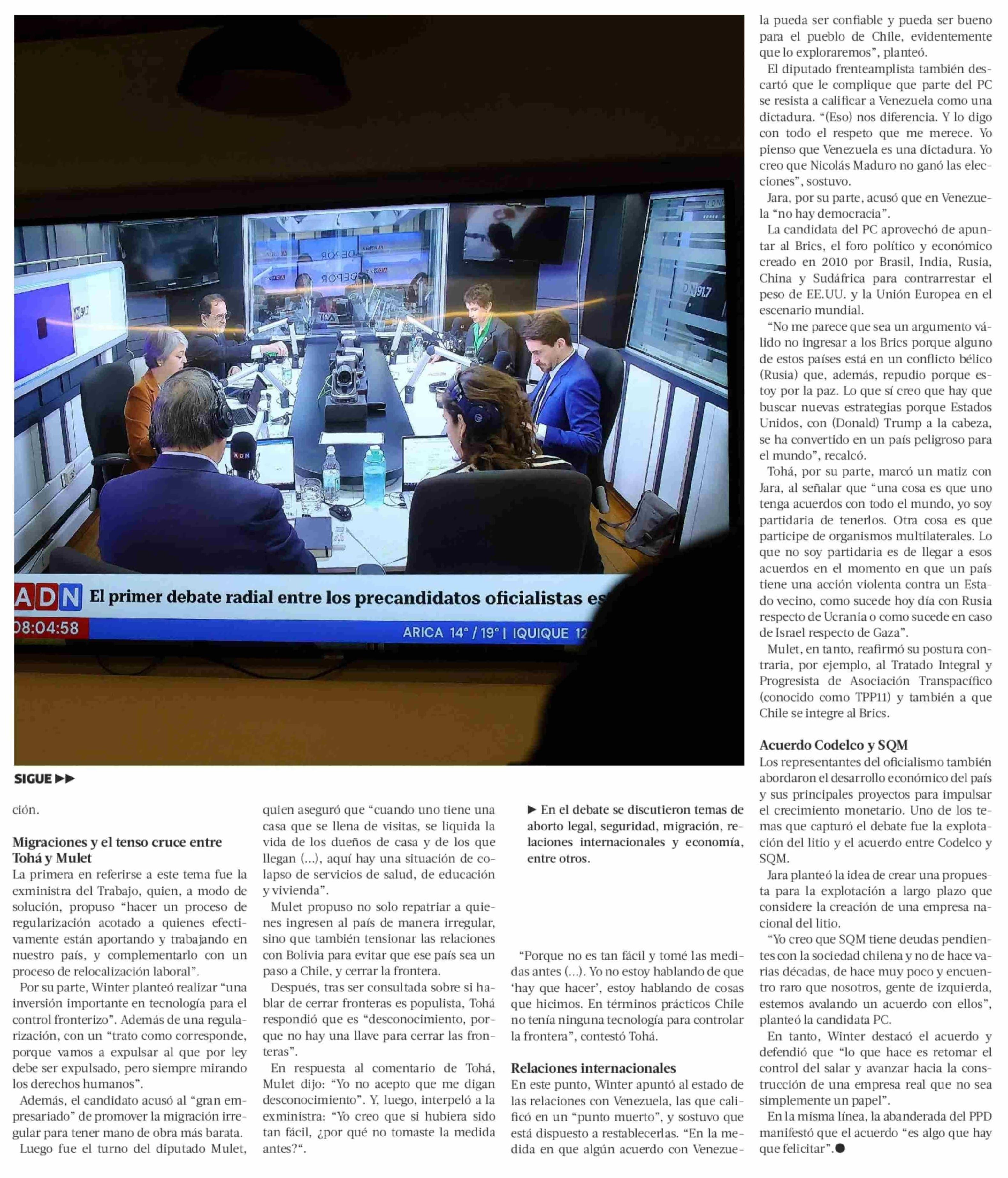 Restricción de voto extranjero, Brics y aborto: candidatos oficialistas marcan diferencias en debate a un mes de primarias 27-05-2025 La Tercera |