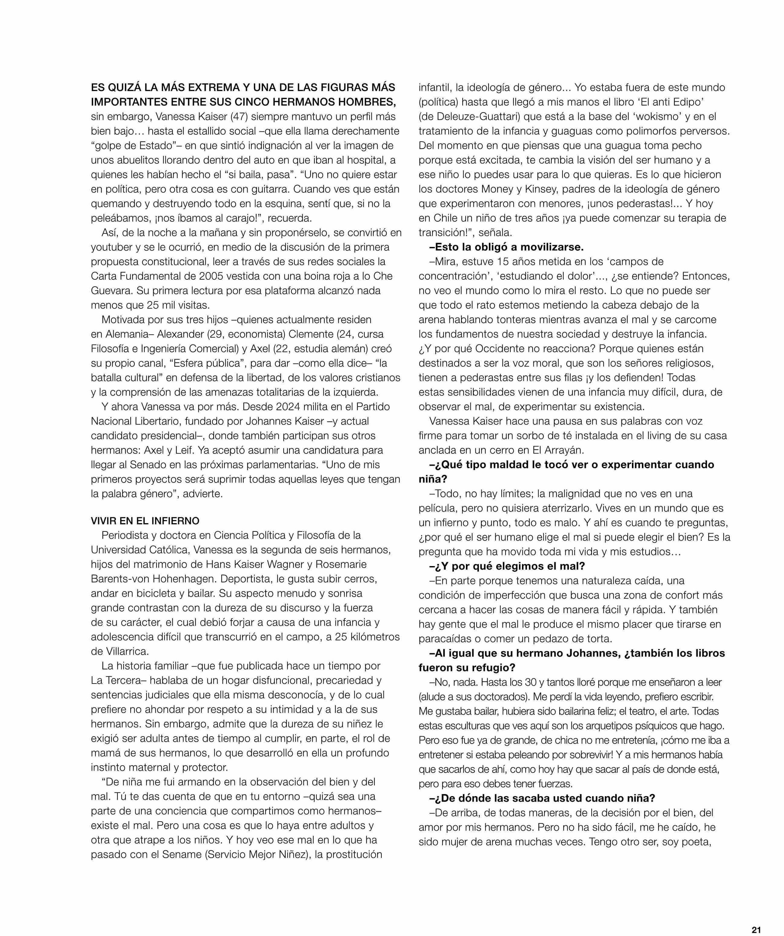 Vanessa EL BASTIÓN DE LOS HERMANOS Kaiser “Soy en extremo rebelde y moriré así" 26-05-2025 Revista Velvet |
