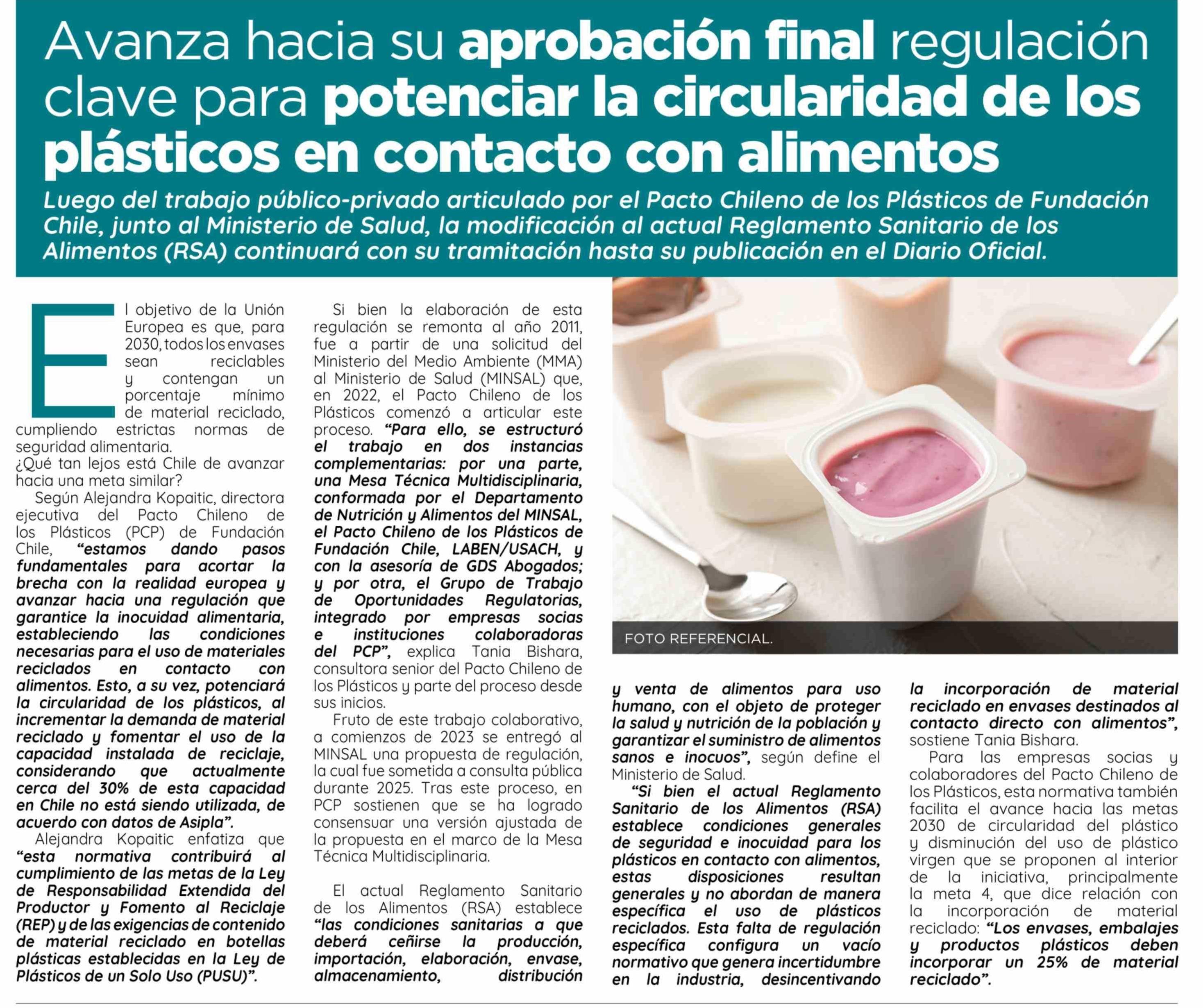 Título: Avanza hacia su aprobación final regulación clave para potenciar la circularidad de los plásticos en contacto con alimentos