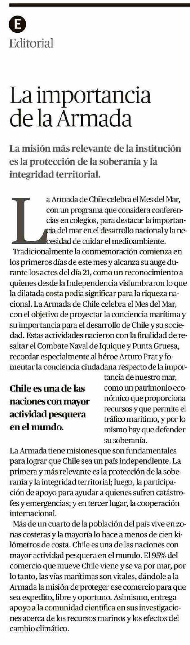 Editorial: La importancia de la Armada 20-05-2025 Crónica de Chillán |