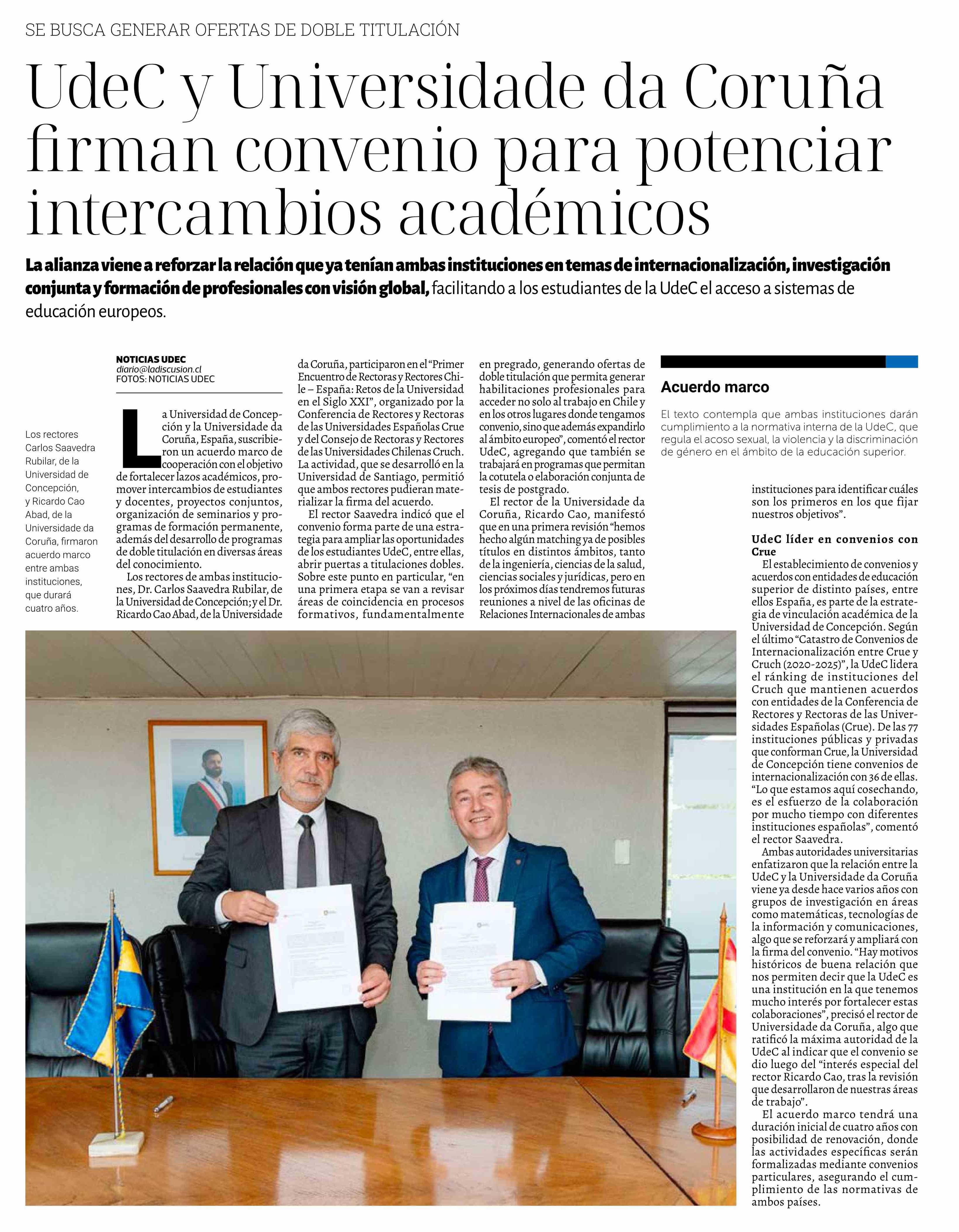 UdeC y Universidade da Coruña firman convenio para potenciar intercambios académicos 29-04-2025 La Discusión |