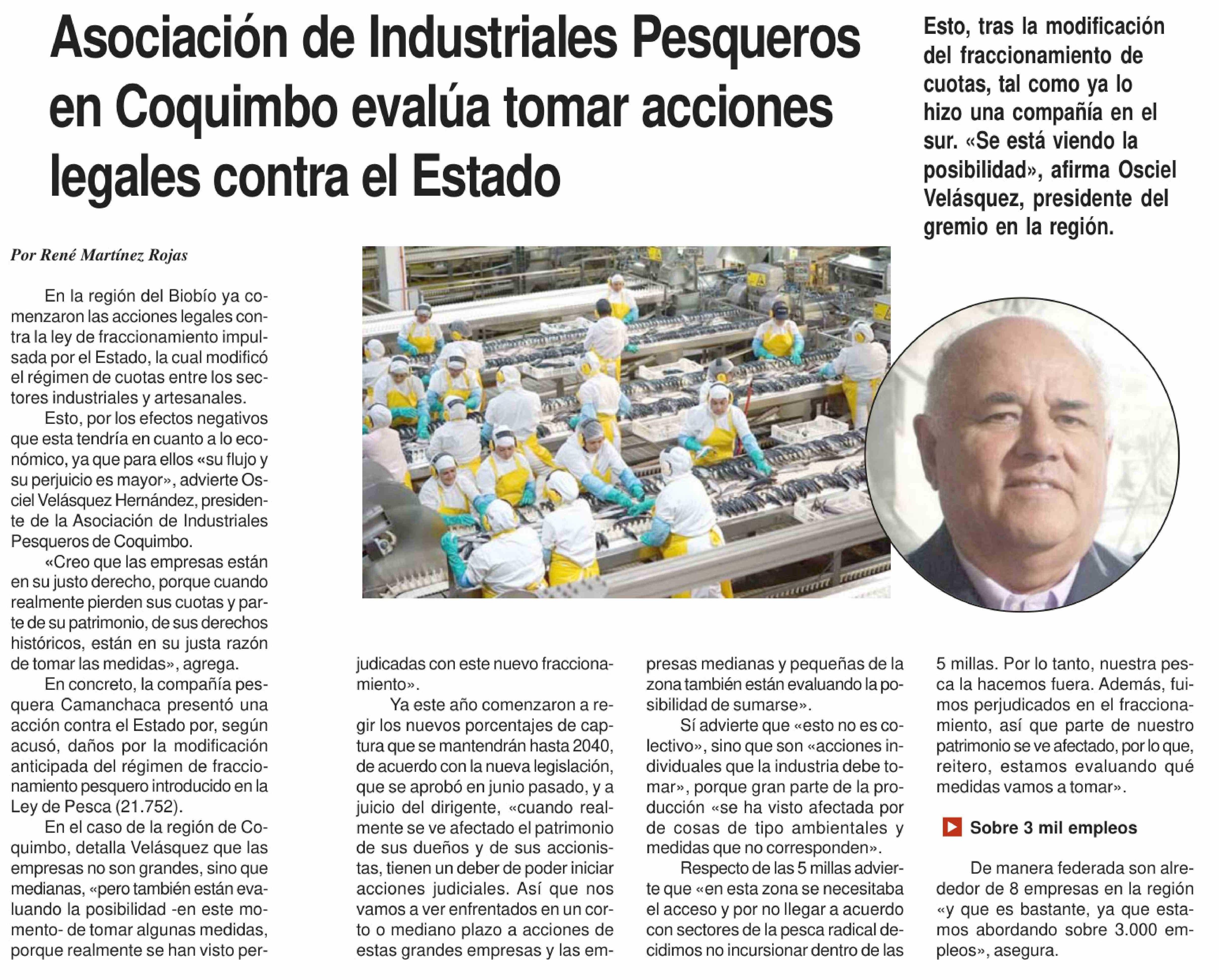 | Título: | Asociación de Industriales Pesqueros en Coquimbo evalúa tomar acciones legales contra el Estado |