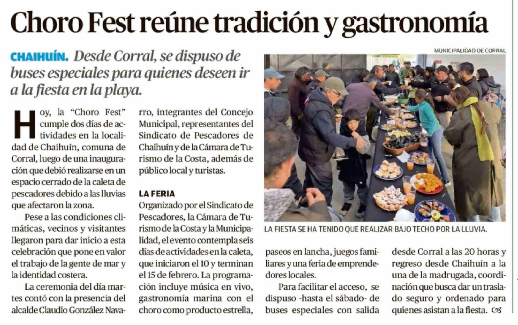 Choro Fest reúne tradición y gastronomía 12-02-2026 Diario Austral Región de Los Ríos |