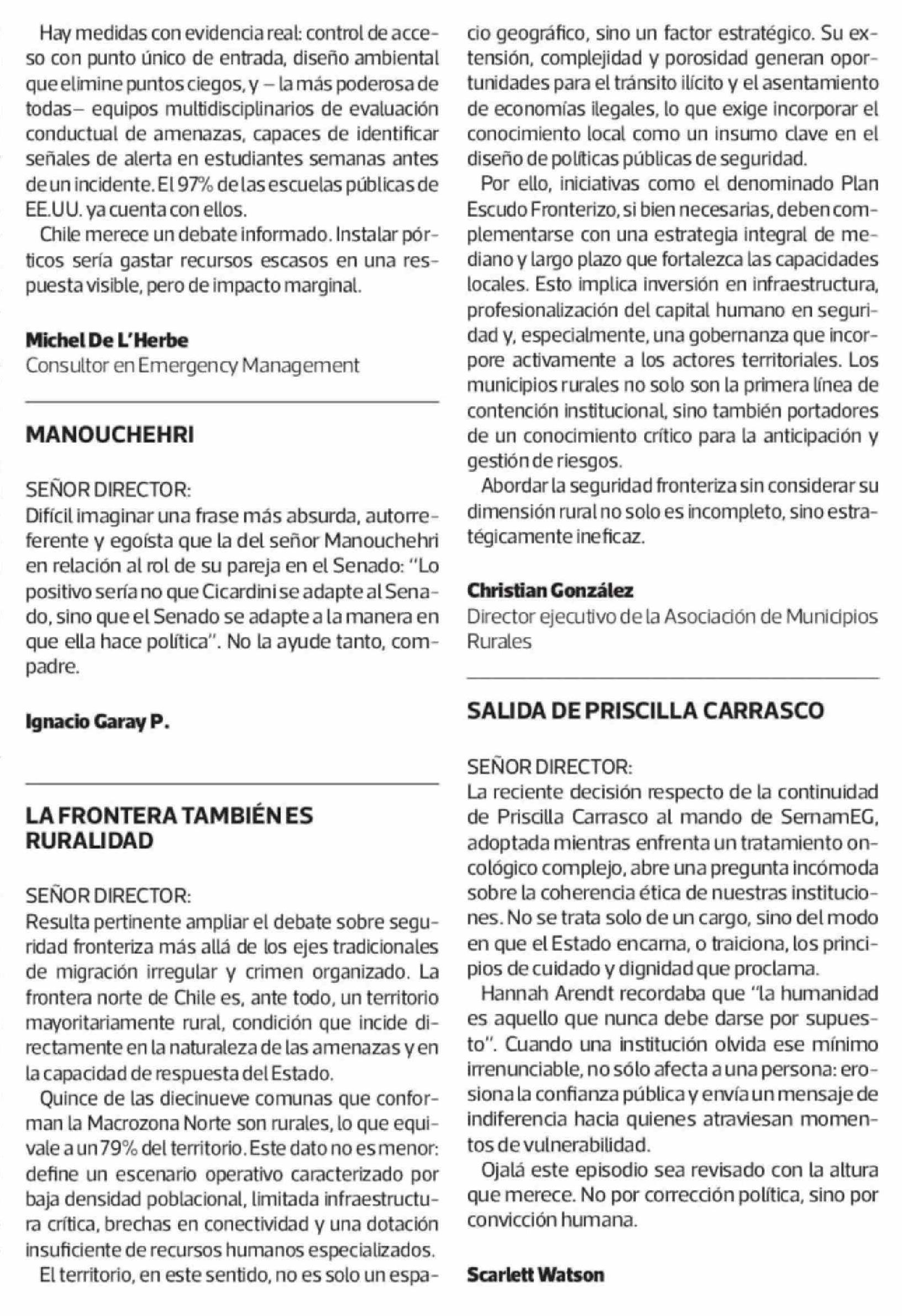 Cartas: LA FRONTERA TAMBIÉN ES RURALIDAD 01-04-2026 La Tercera |