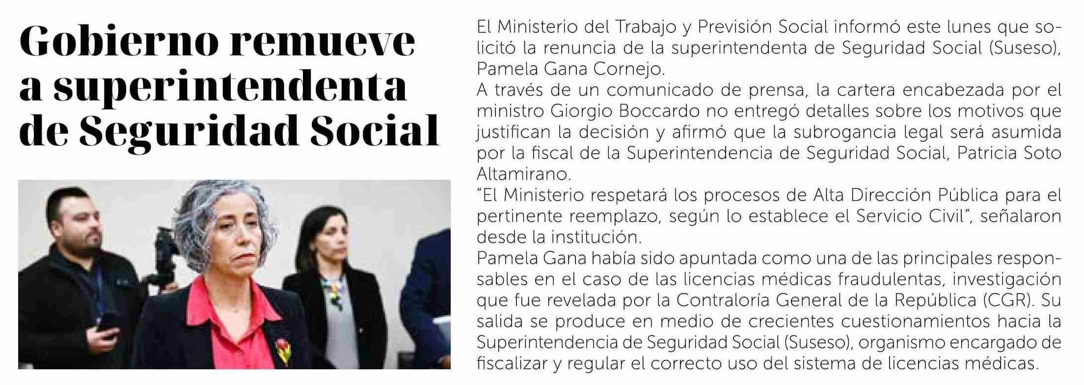 | Título: | Gobierno remueve a superintendenta de Seguridad Social |