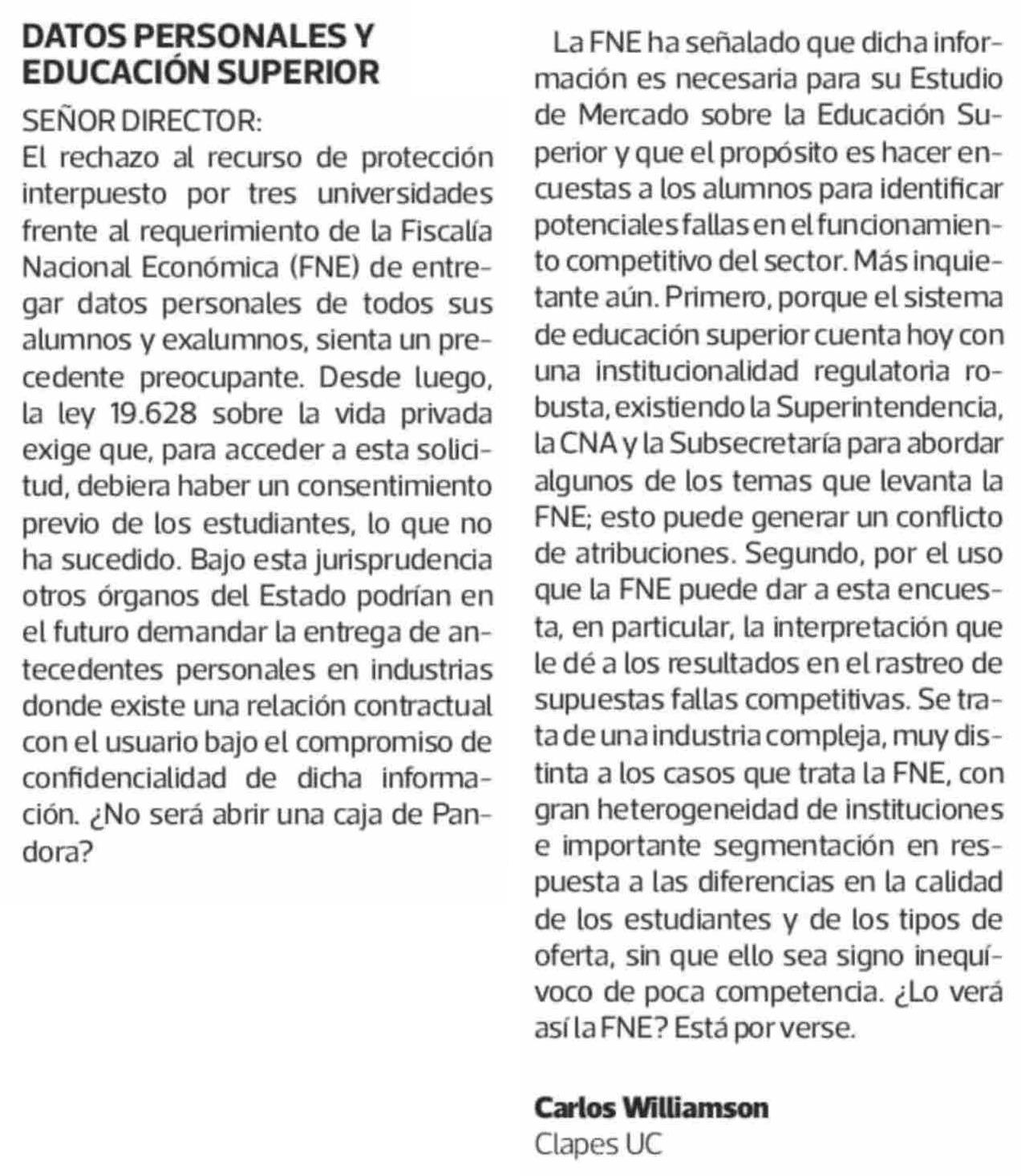 DATOS PERSONALES Y EDUCACIÓN SUPERIOR 24-05-2025 La Tercera |
