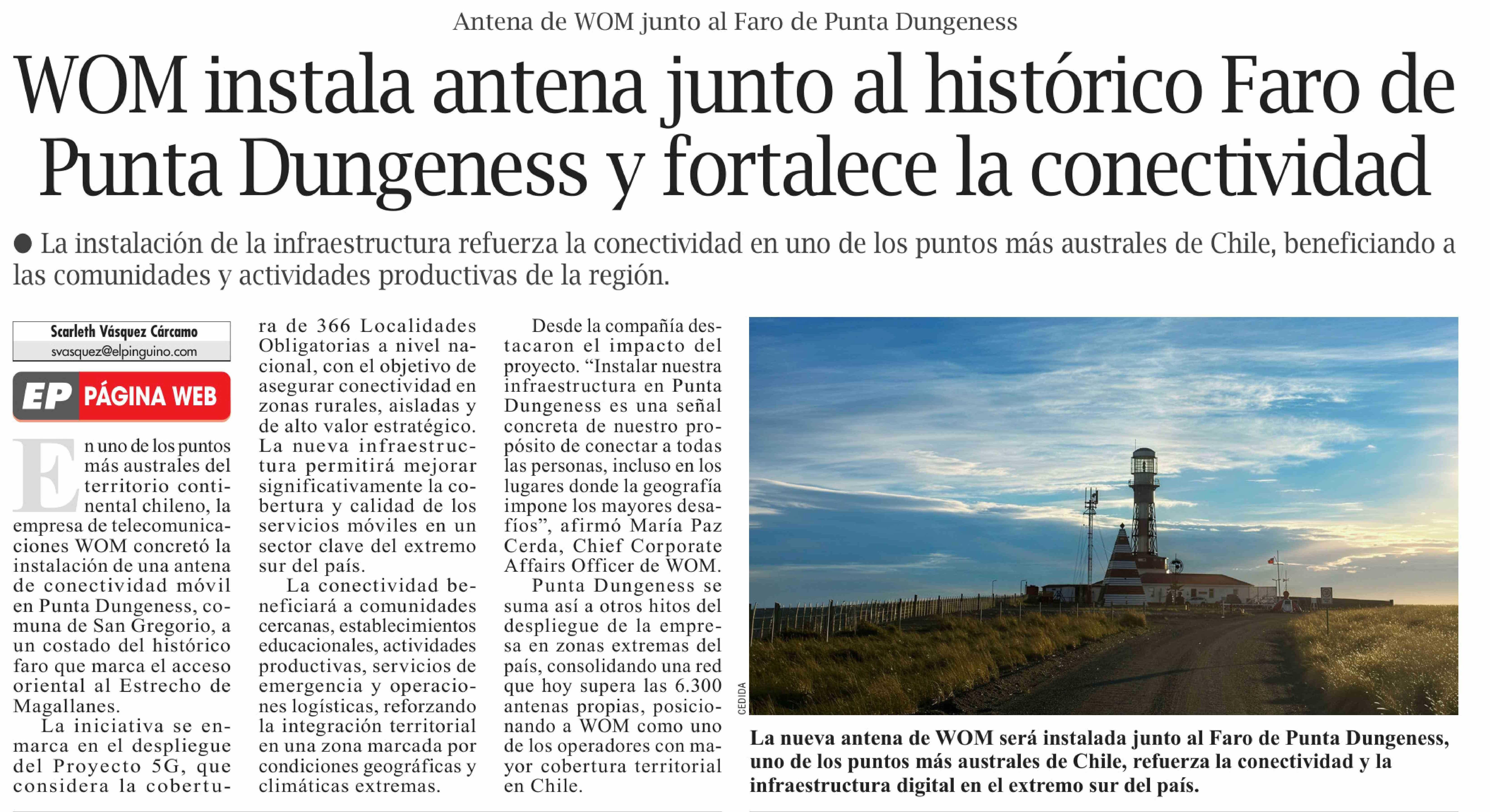 Título: WOM instala antena junto al histórico Faro de Punta Dungeness y fortalece la conectividad