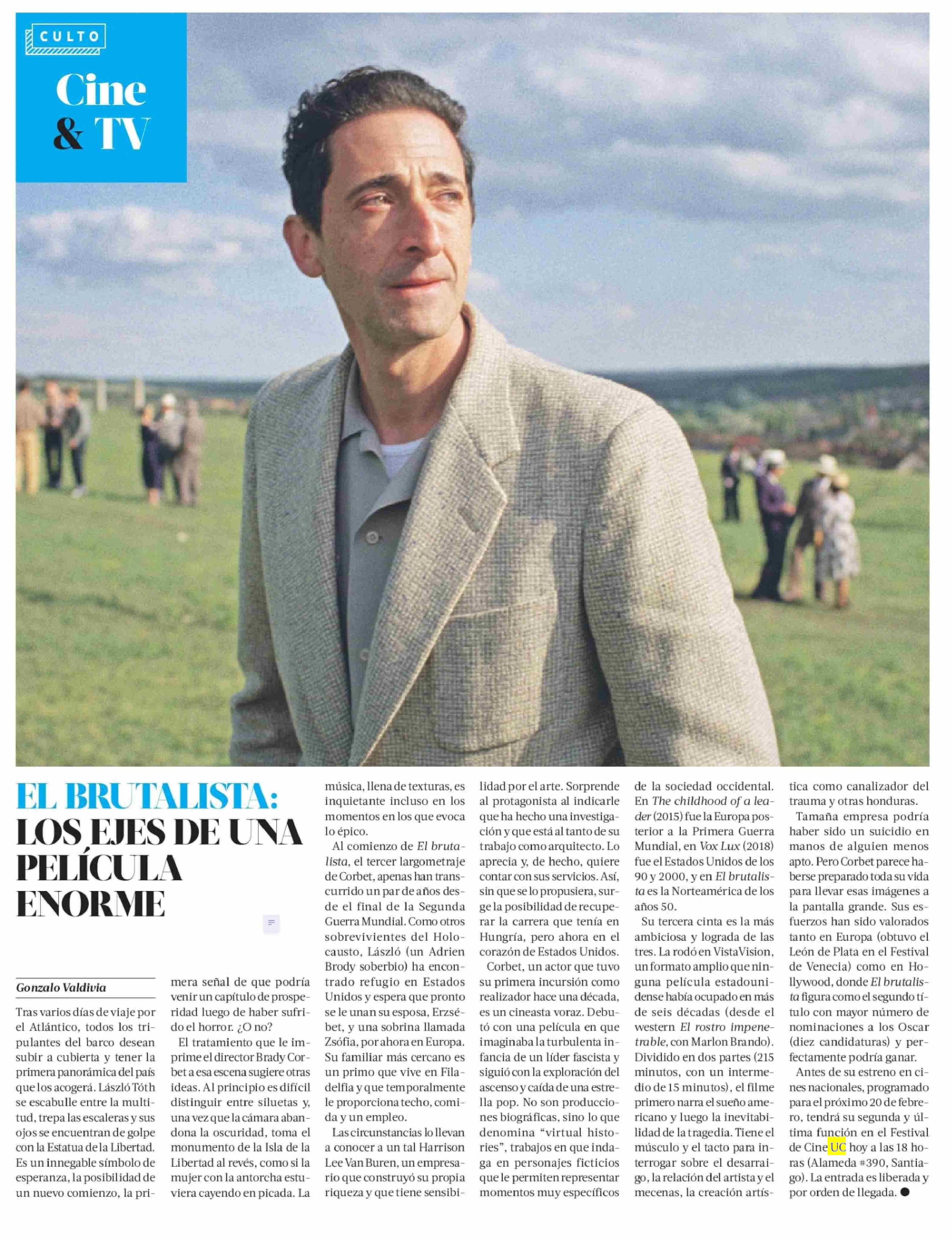 EL BRUTALISTA: LOS EJES DE UNA PELICULA ENORME 25-01-2025 La Tercera |