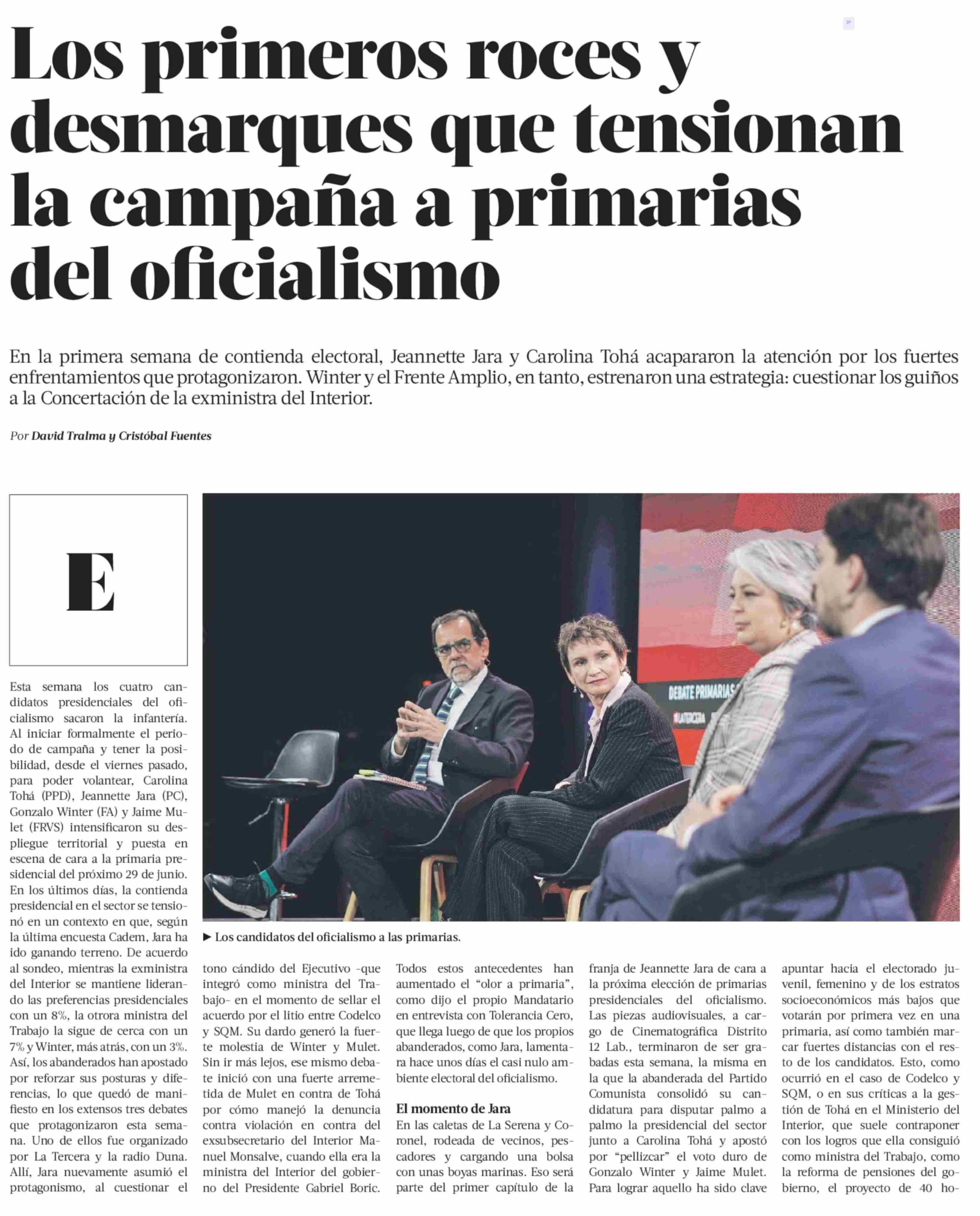 Los primeros roces y desmarques que tensionan del oficialismo la campaña a primarias 07-06-2025 La Tercera |
