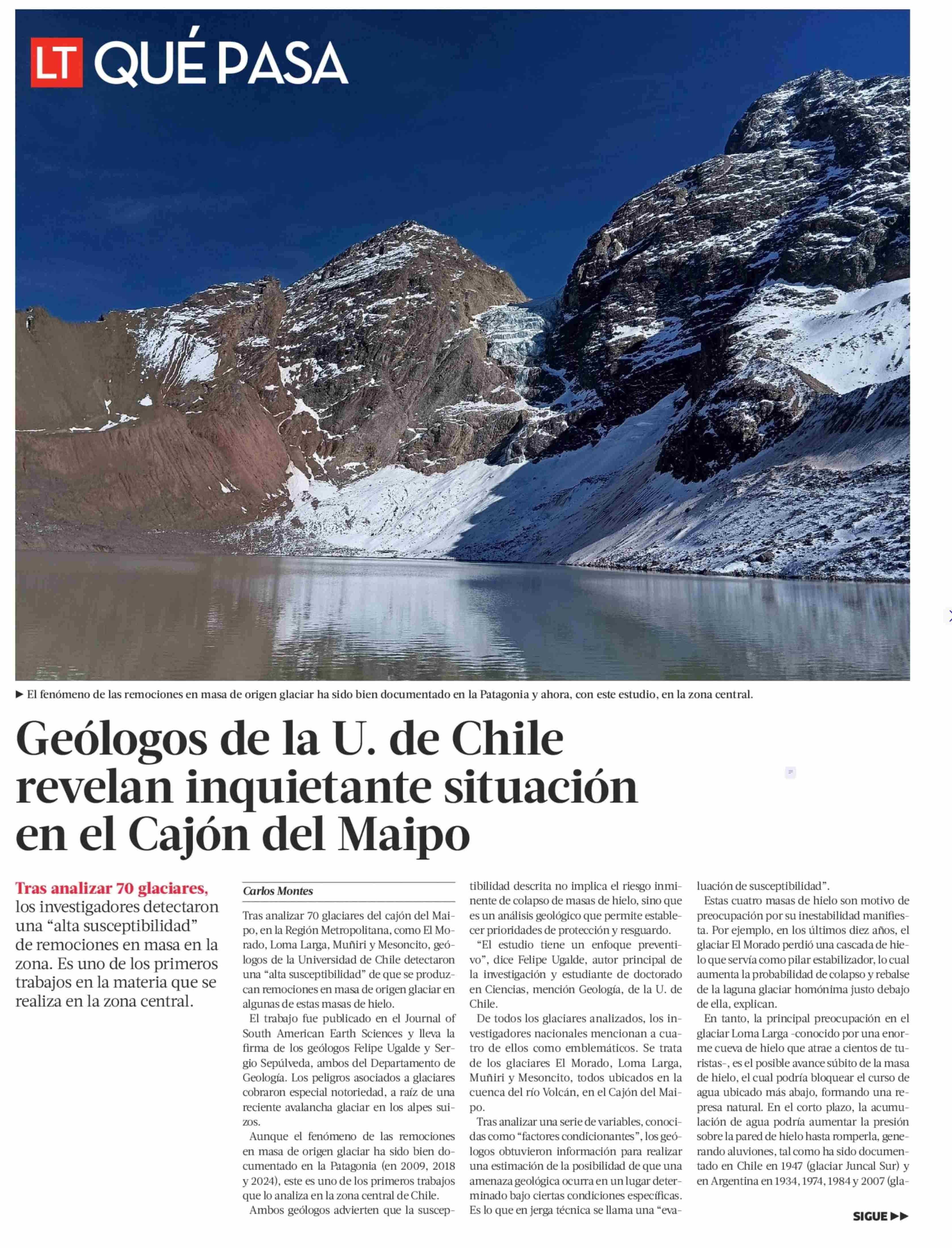 Geólogos de la U. de Chile revelan inquietante situación en el Cajón del Maipo 04-06-2025 La Tercera |