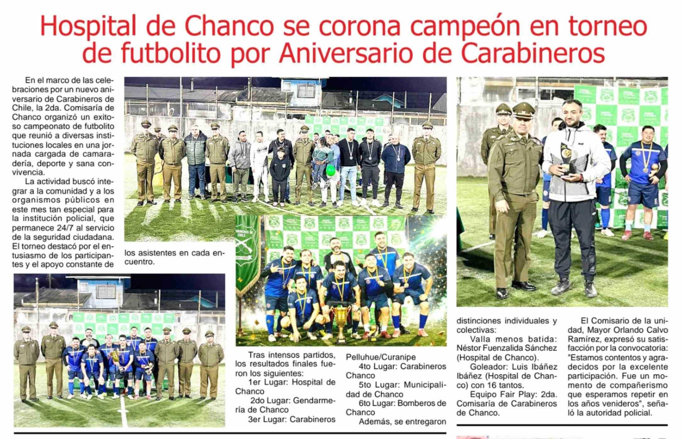 Título: Hospital de Chanco se corona campeón en torneo de futbolito por Aniversario de Carabineros