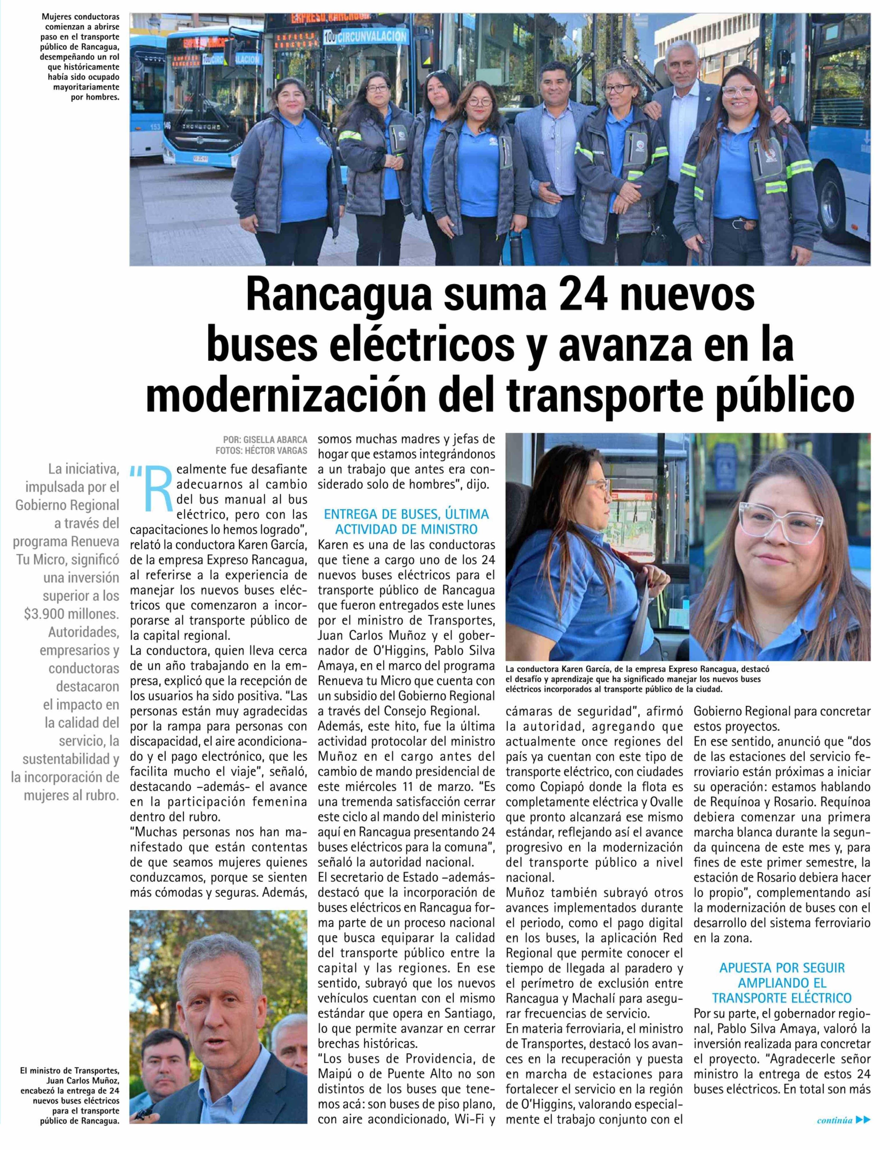 Título: Rancagua suma 24 nuevos buses eléctricos y avanza en la modernización del transporte público