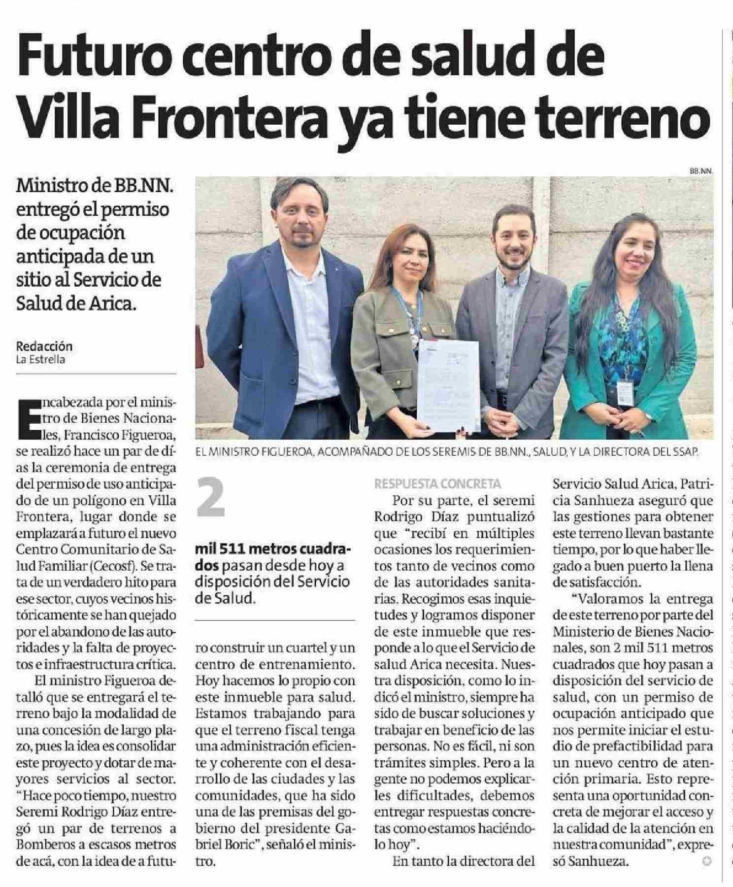 Futuro centro de salud de Villa Frontera ya tiene terreno 04-06-2025 La Estrella de Arica |