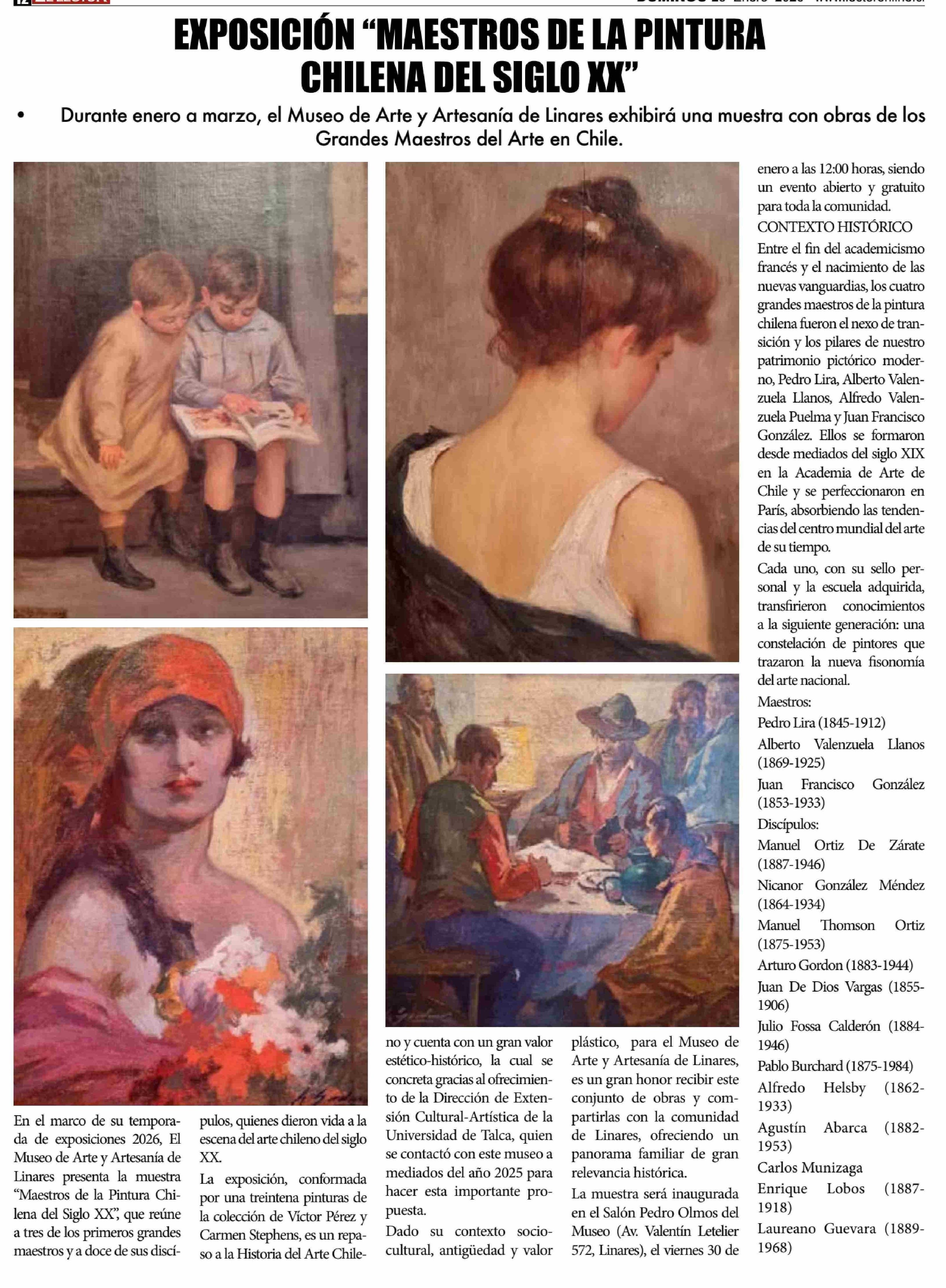 EXPOSICIÓN "MAESTROS DE LA PINTURA CHILENA DEL SIGLO XX" 25-01-2026 El Lector |