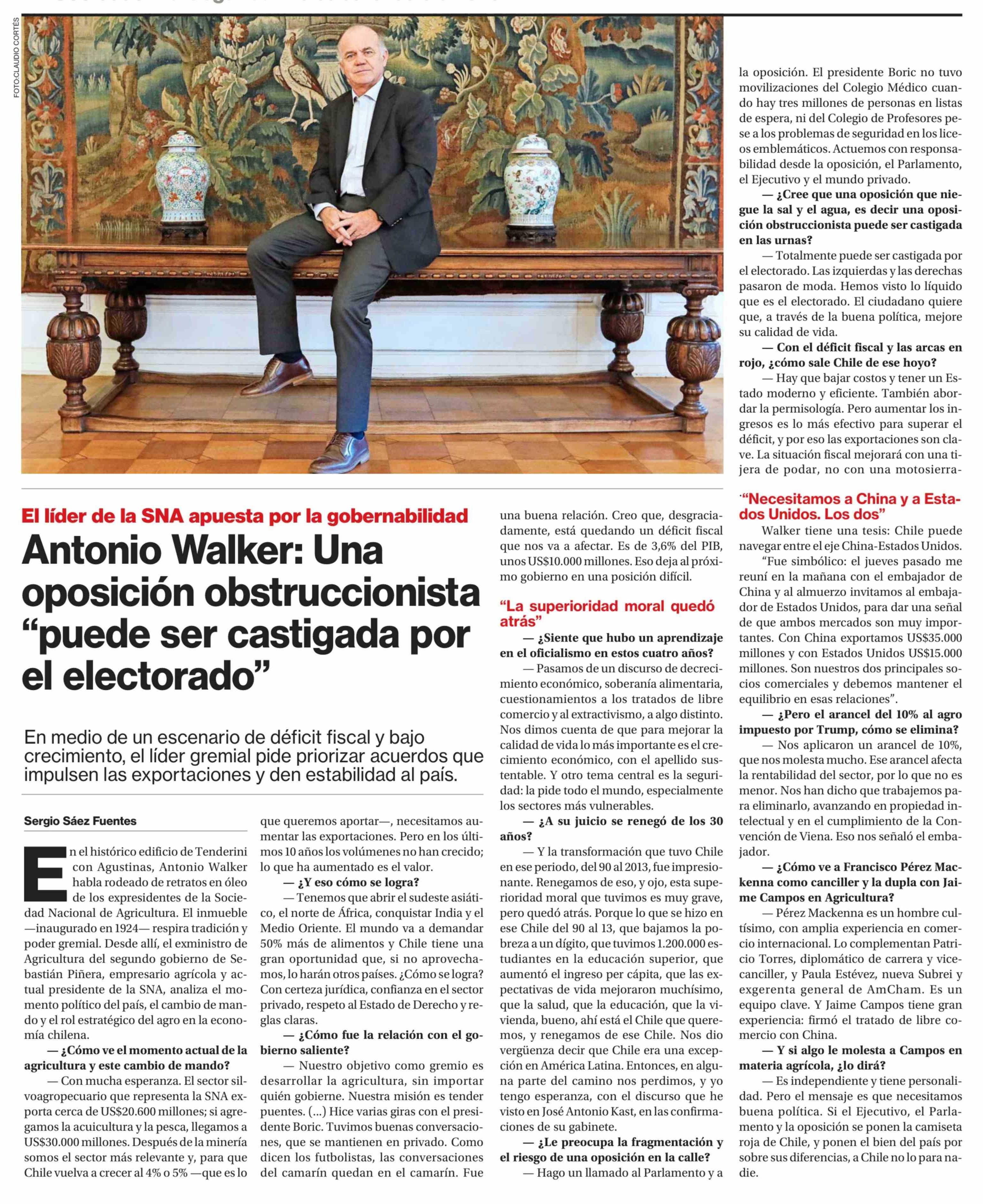Antonio Walker: Una oposición obstruccionista "puede ser castigada por el electorado" 18-02-2026 La Segunda |