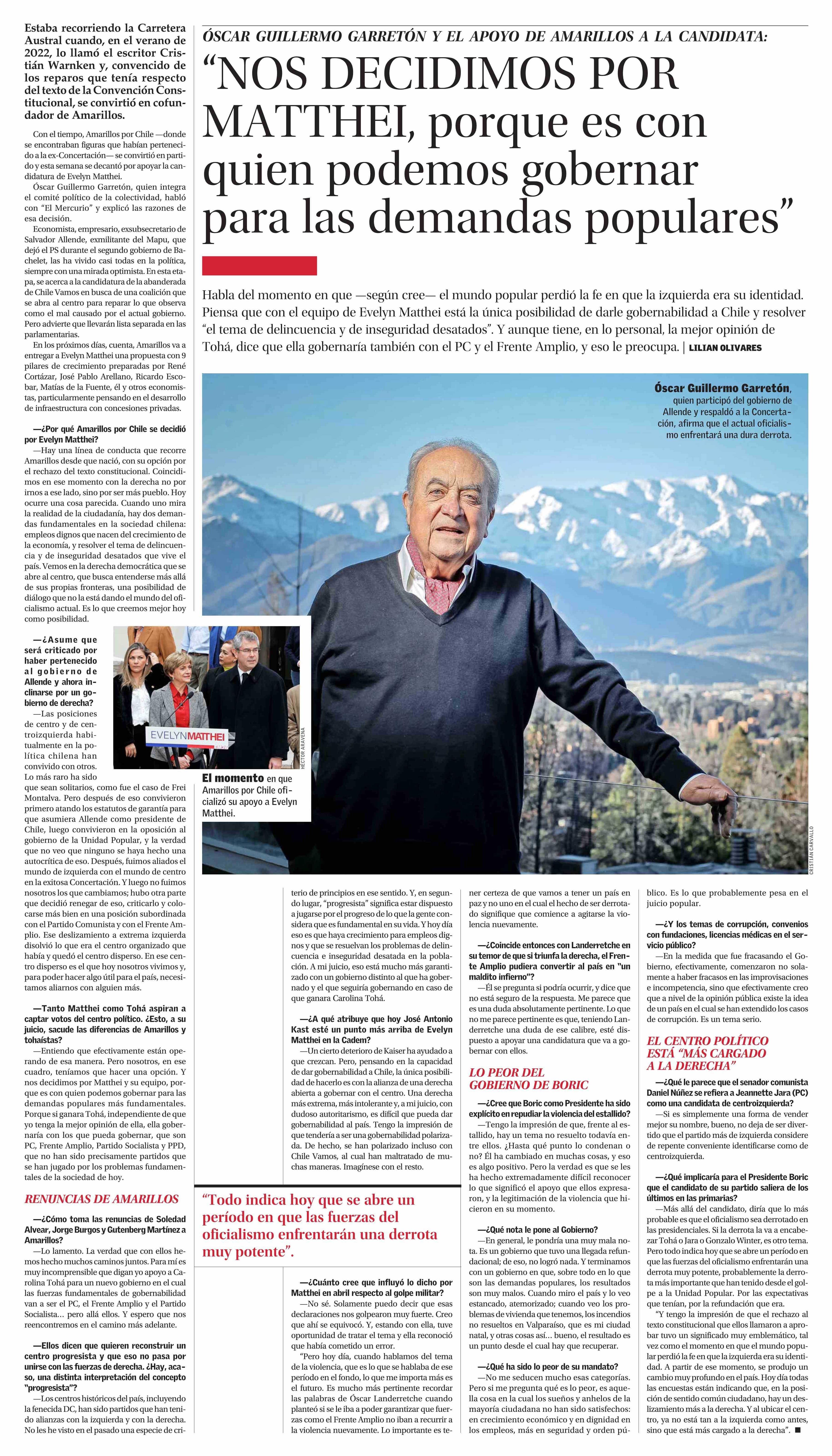"NOS DECIDIMOS POR MATTHEI, porque es con quien podemos gobernar para las demandas populares" 15-06-2025 El Mercurio |
