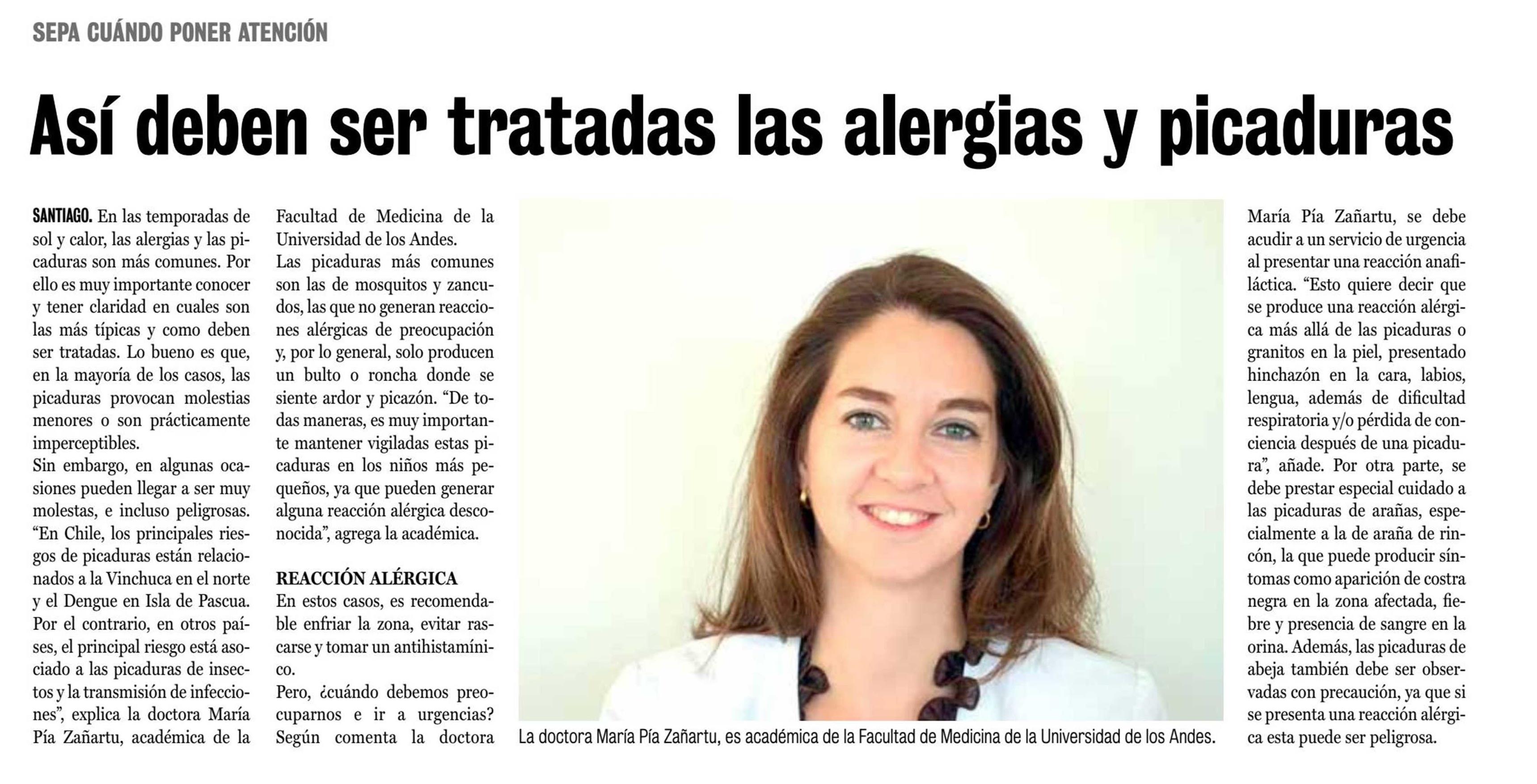 Así deben ser tratadas las alergias y picaduras 21-02-2023 La Prensa de Curicó |