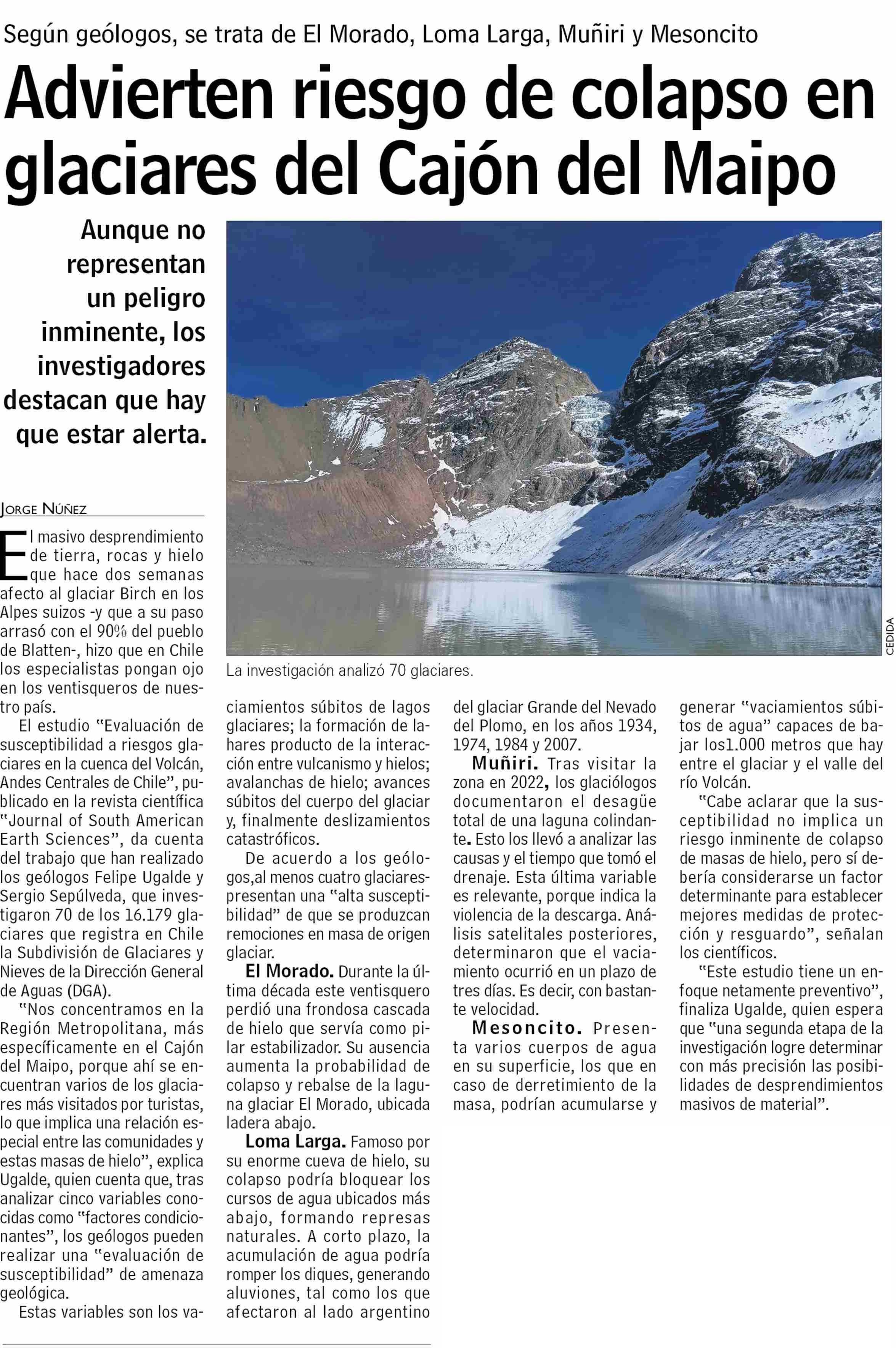 Advierten riesgo de colapso en glaciares del Cajón del Maipo 10-06-2025 Las Últimas Noticias |