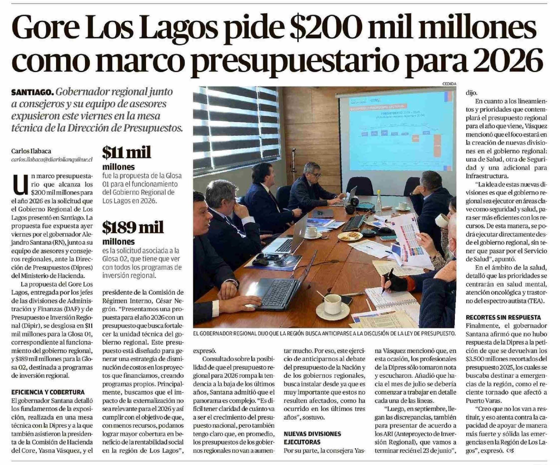 Gore Los Lagos pide $200 mil millones como marco presupuestario para 2026 14-06-2025 El Llanquihue |