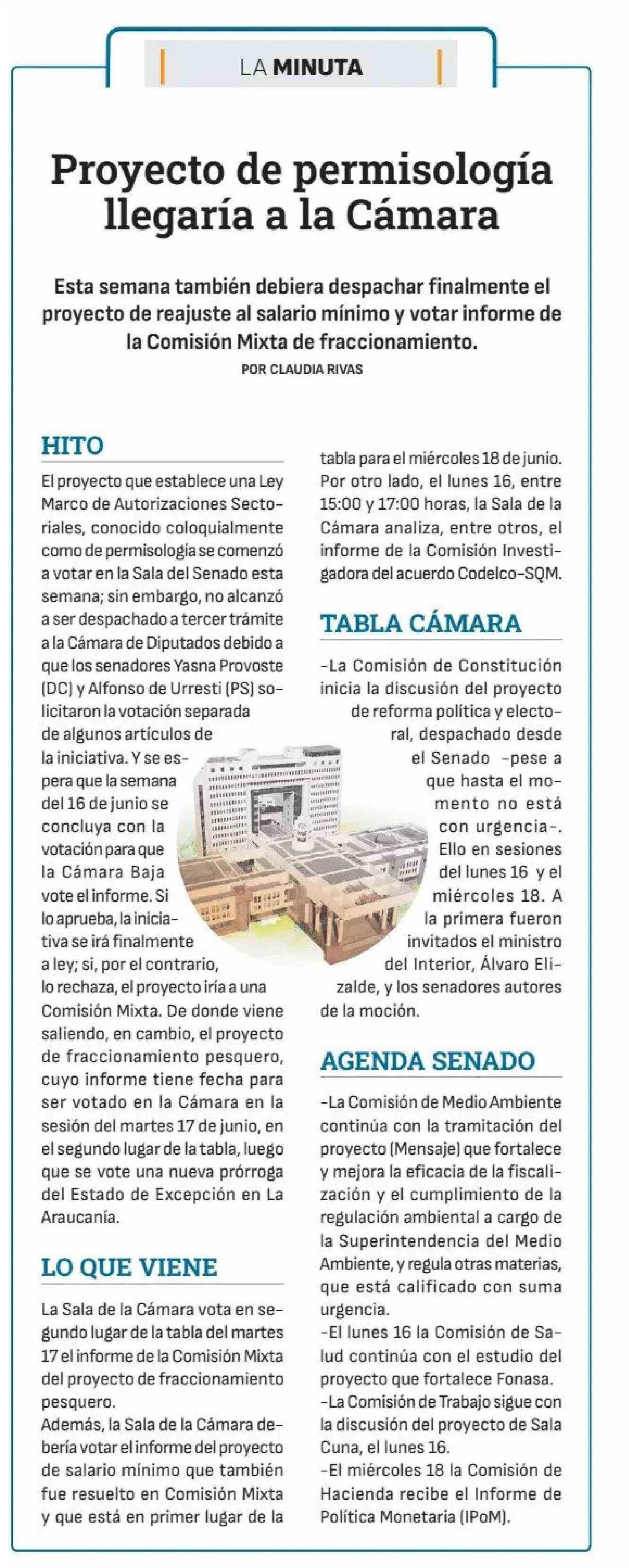 Proyecto de permisología llegaría a la Cámara 14-06-2025 Diario Financiero |