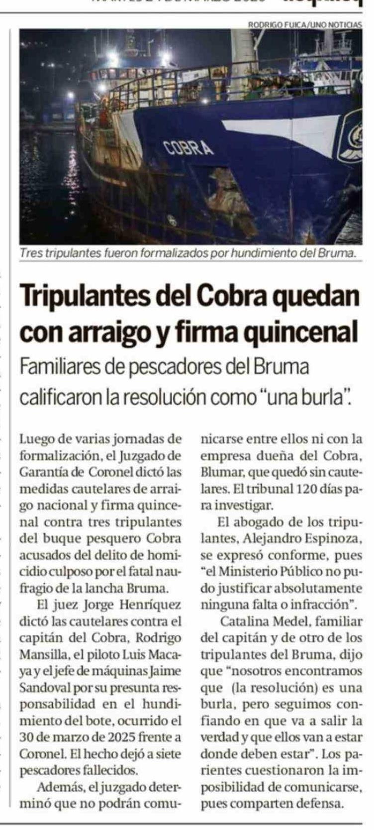 | Título: | Tripulantes del Cobra quedan con arraigo y firma quincenal |