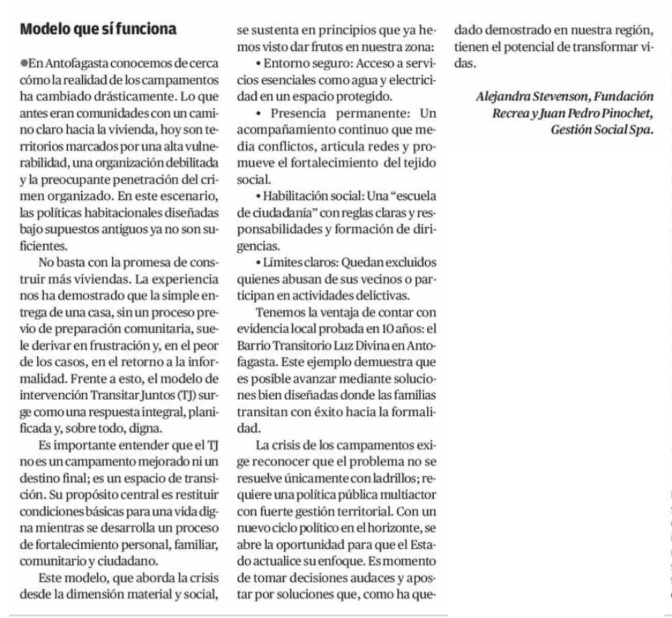 Cartas: Modelo que si funciona 16-03-2026 El Mercurio de Calama |