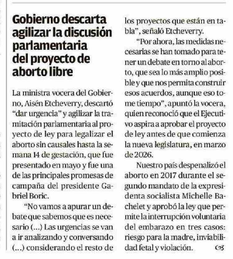 Gobierno descarta agilizar la discusión parlamentaria del proyecto de aborto libre 10-06-2025 El Llanquihue |