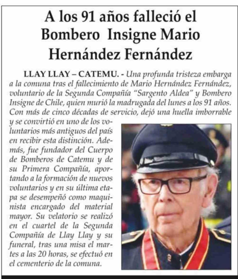Título: A los 91 años falleció el Bombero Insigne Mario Hernández Fernández