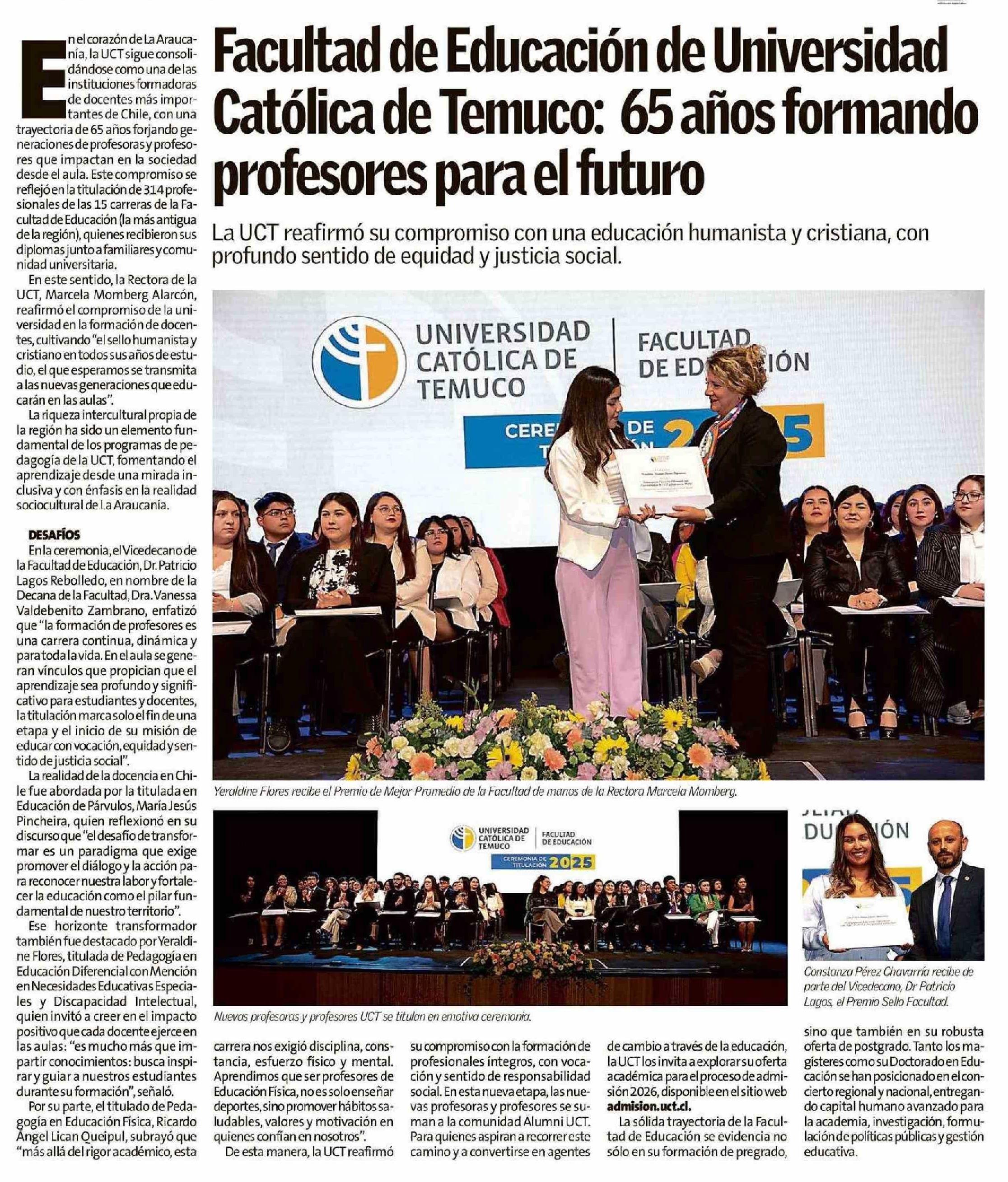 Facultad de Educación de Universidad Católica de Temuco: 65 años formando profesores para el futuro 06-04-2025 El Austral de la Araucanía |
