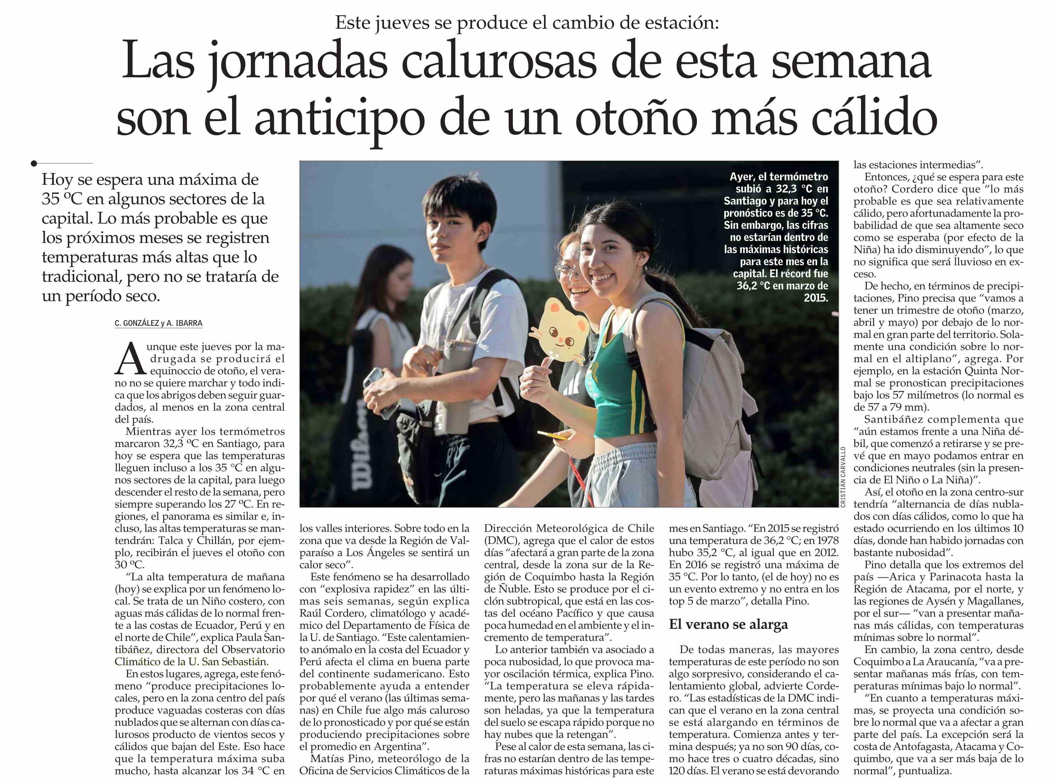 Las jornadas calurosas de esta semana son el anticipo de un otoño más cálido 18-03-2025 El Mercurio |
