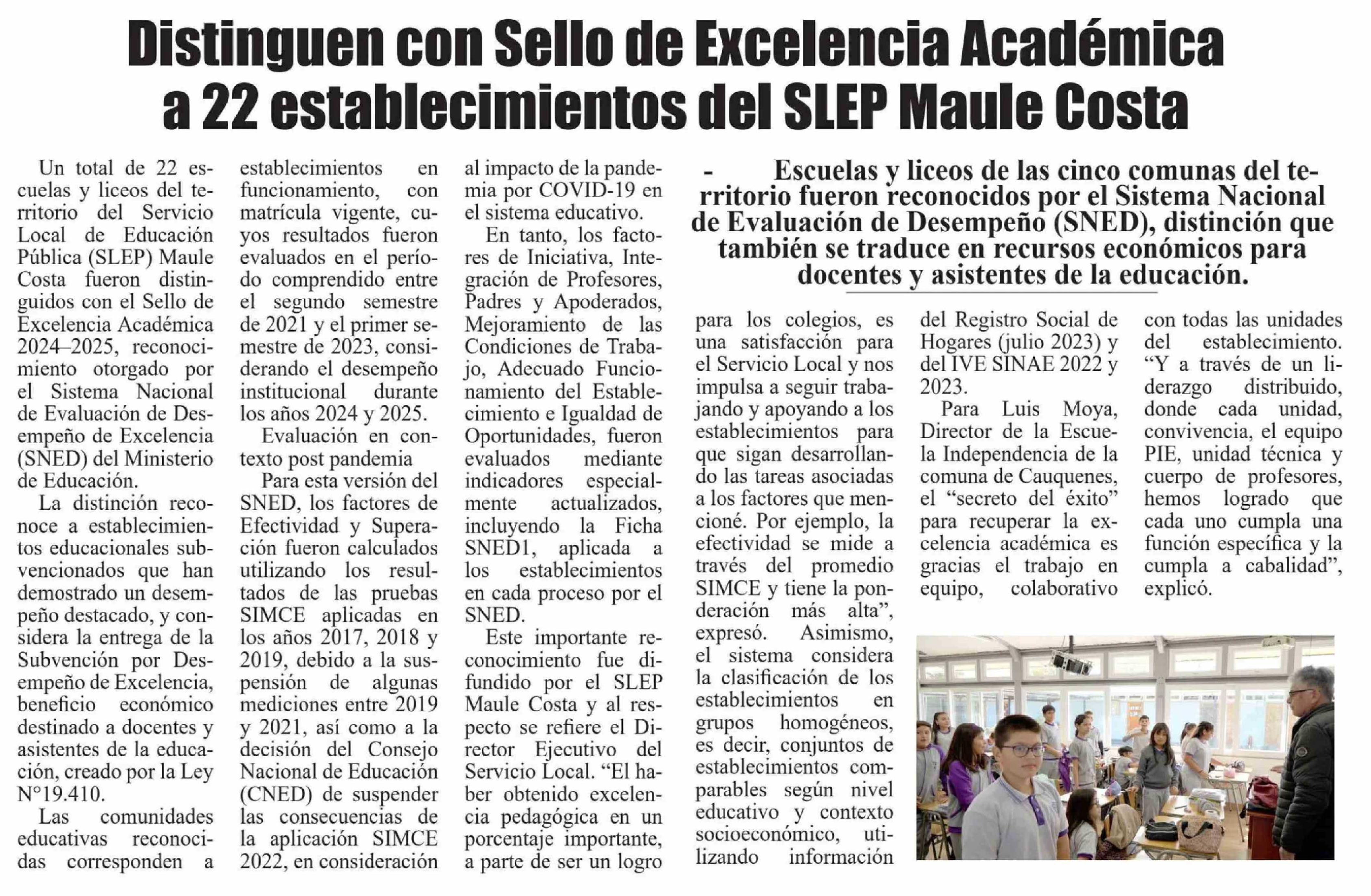 Título: Distinguen con Sello de Excelencia Académica a 22 establecimientos del SLEP Maule Costa