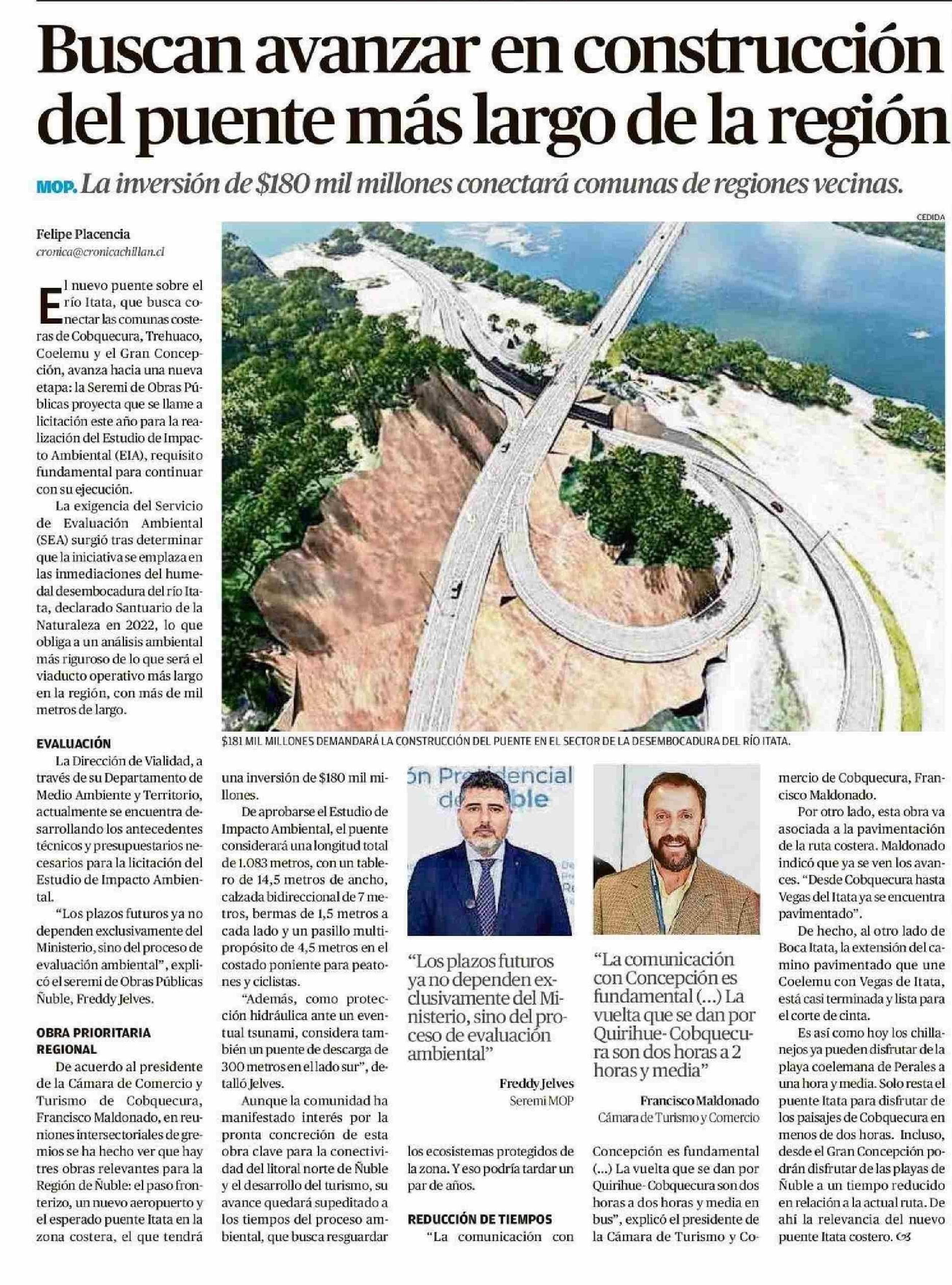 Buscan avanzar en construcción del puente más largo de la región 18-05-2025 Crónica de Chillán |