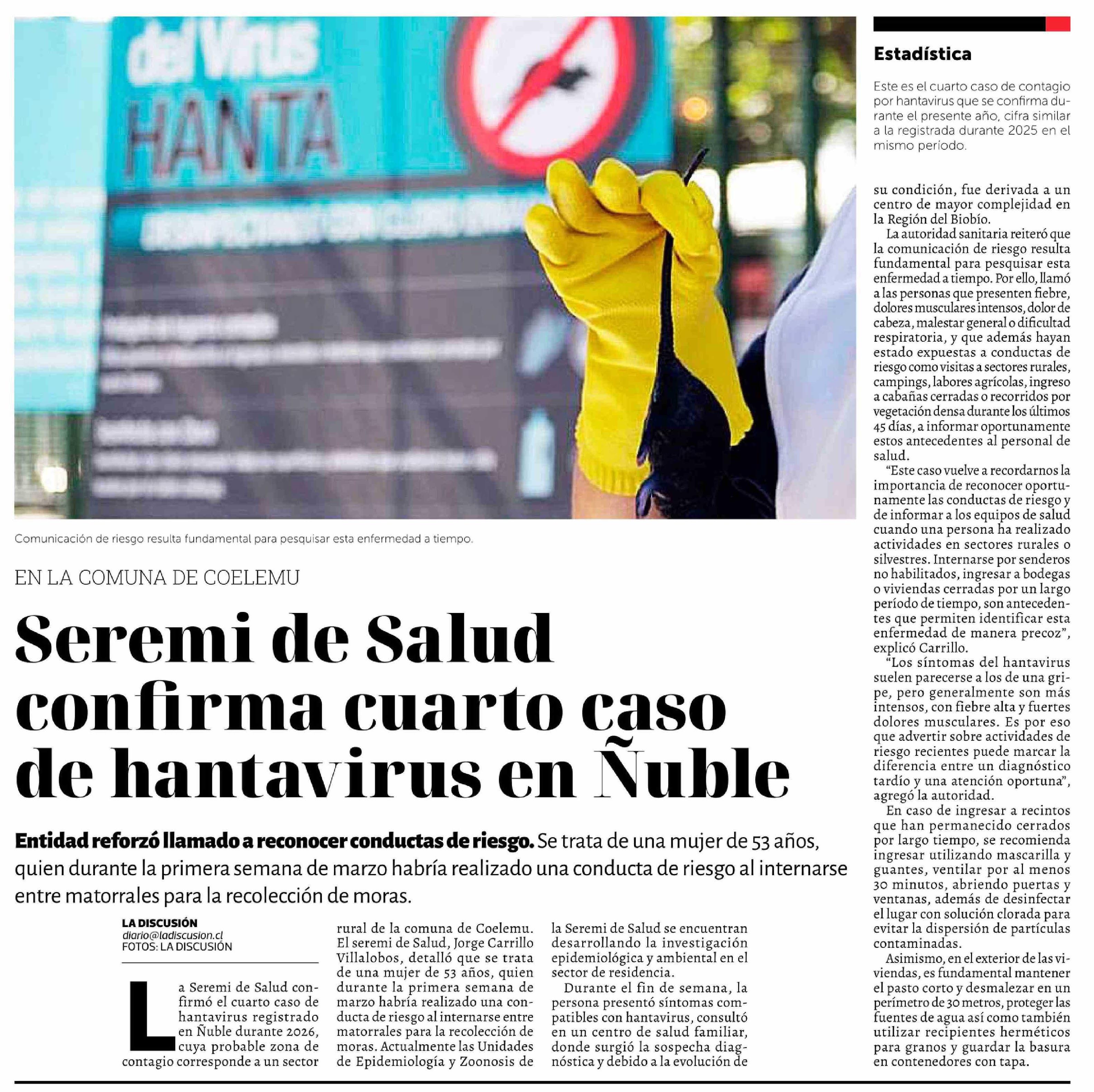 Título: Seremi de Salud confirma cuarto caso de hantavirus en Ñuble