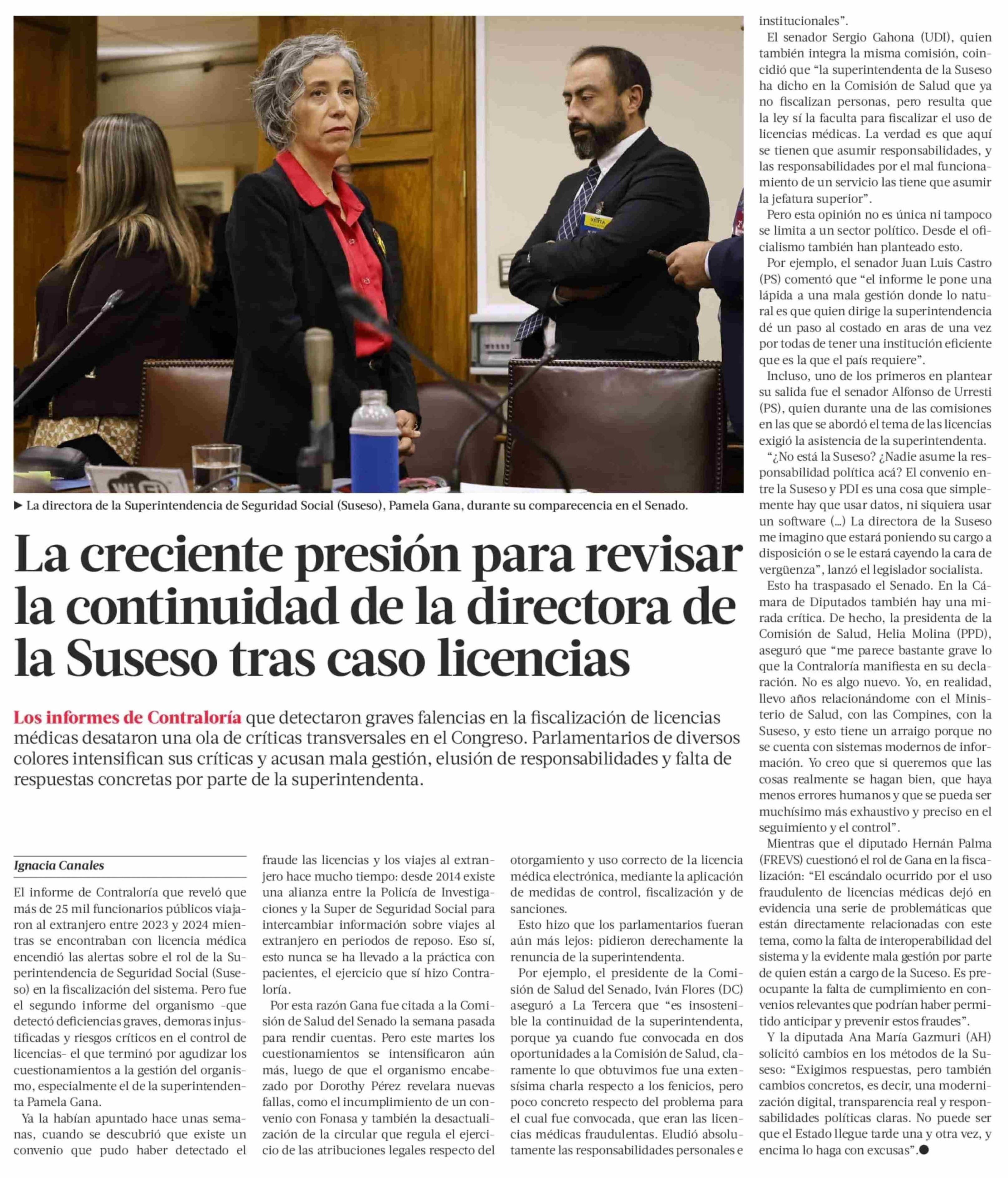 La creciente presión para revisar la continuidad de la directora de la Suseso tras caso licencias 12-06-2025 La Tercera |