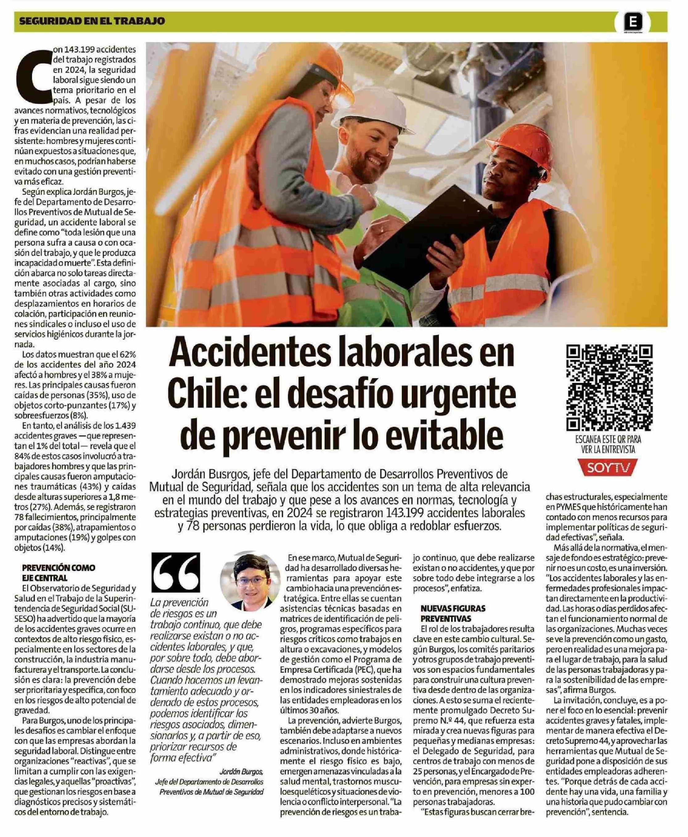 Accidentes laborales en Chile: el desafío urgente de prevenir lo evitable 27-06-2025 El Mercurio de Valparaíso |