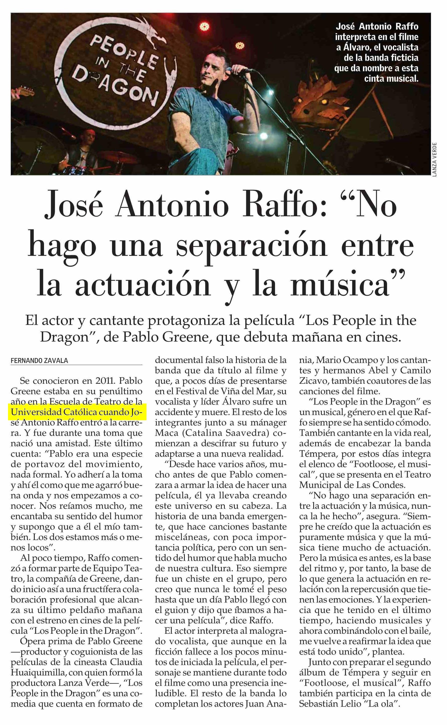 Título: José Antonio Raffo: “No hago una separación entre la actuación y la música”