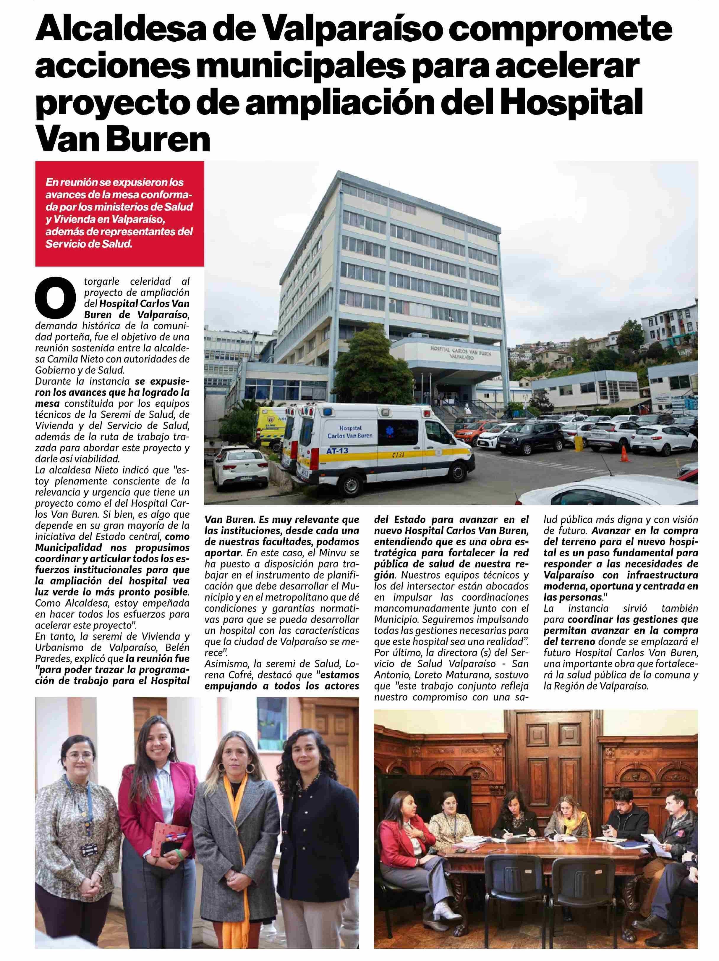 Alcaldesa de Valparaiso compromete acciones municipales para acelerar proyecto de ampliación del Hospital Van Buren 19-06-2025 Puranoticia.cl |