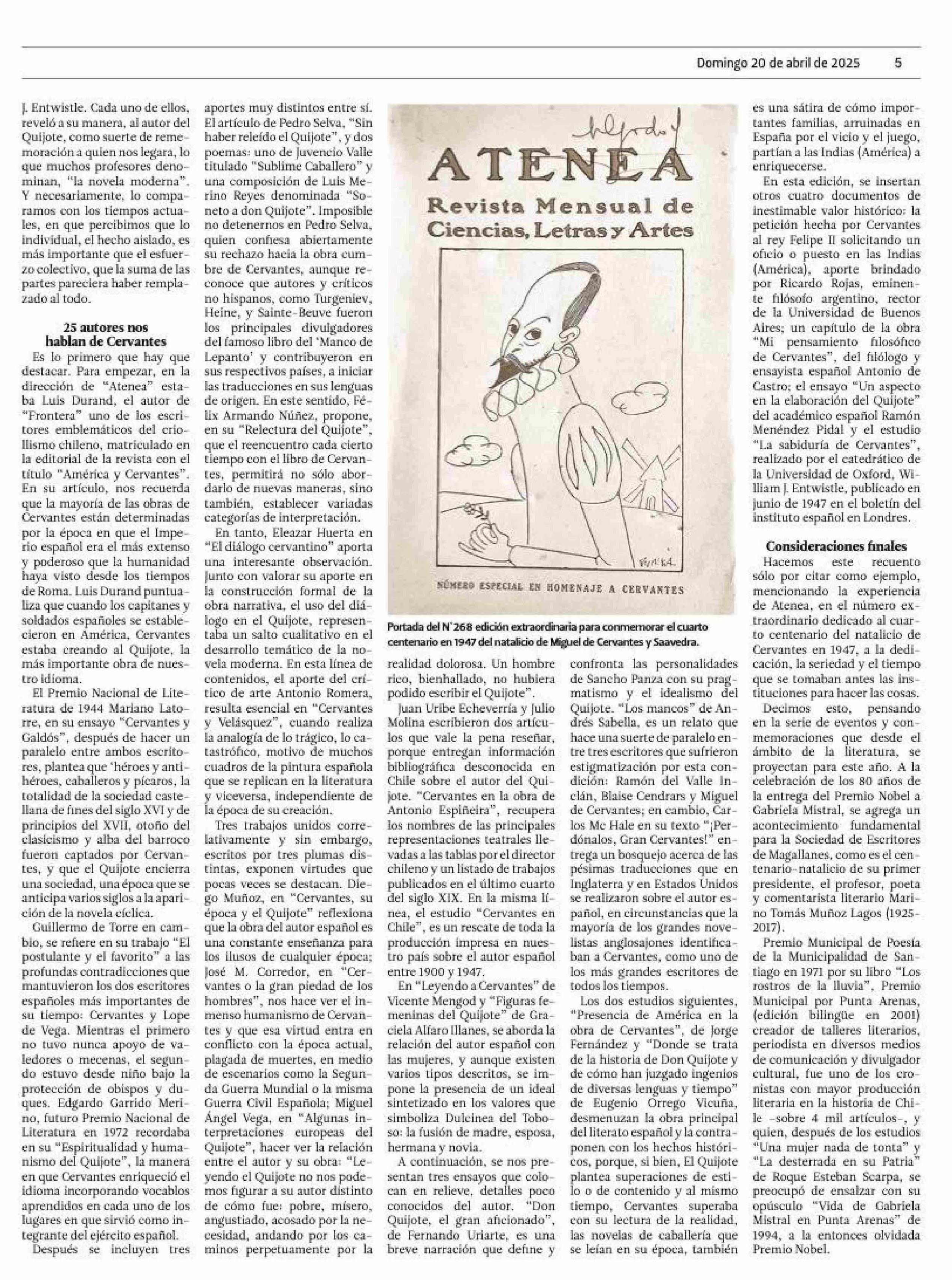 Apuntes sobre la Revista Atenea y el número especial al 4” centenario del nacimiento de Mionel de Cervantes v Saavedra en 1947 20-04-2025 El Magallanes |