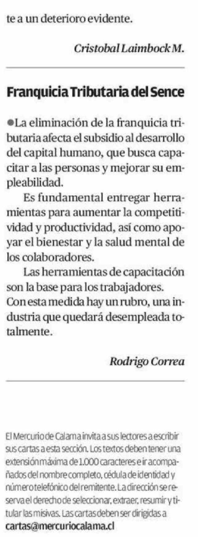 CARTAS: Crisis educacional 19-04-2026 El Mercurio de Calama |
