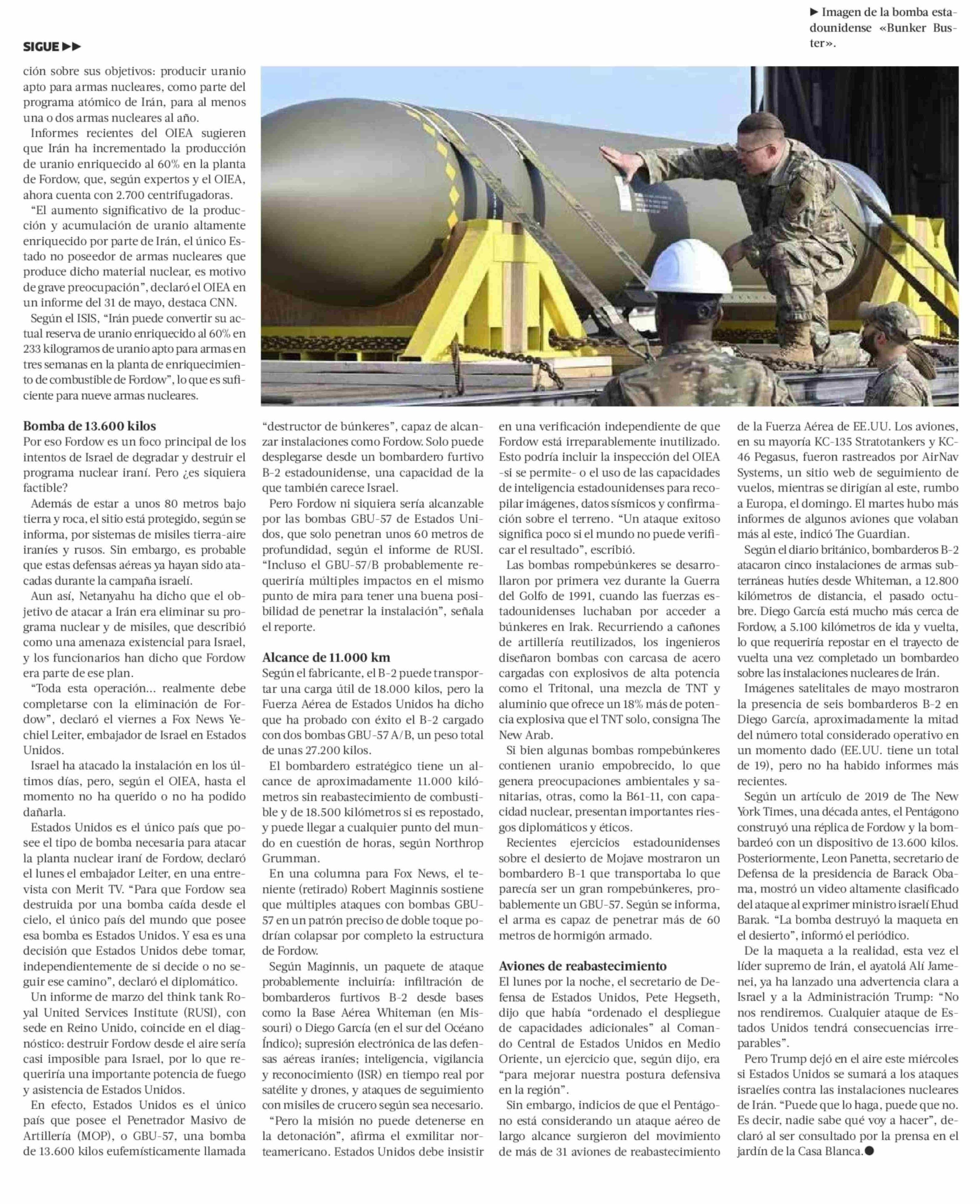 La GBU-57 y el B-2: el exclusivo arsenal de EE.UU. que Israel necesita para destruir planta nuclear clave de Irán 19-06-2025 La Tercera |
