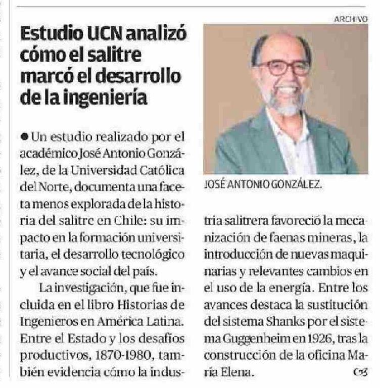 Estudio UCN analizó dela ingeniería marcó el desarrollo cómo el salitre 29-04-2025 El Mercurio de Calama |