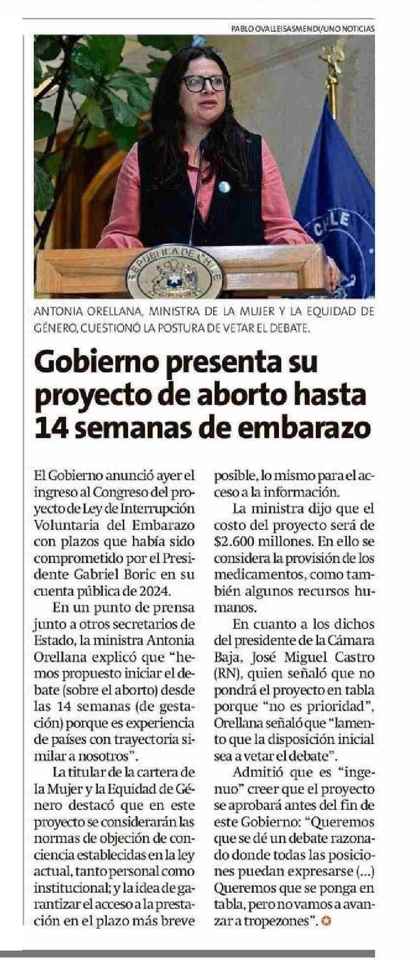 Gobierno presenta su proyecto de aborto hasta 14 semanas de embarazo 29-05-2025 La Estrella de Chiloé |