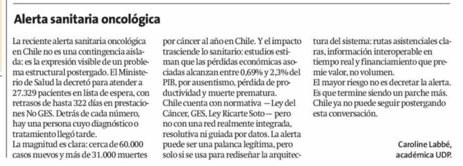 Cartas: Alerta sanitaria oncológica 05-04-2026 La Estrella de Iquique |
