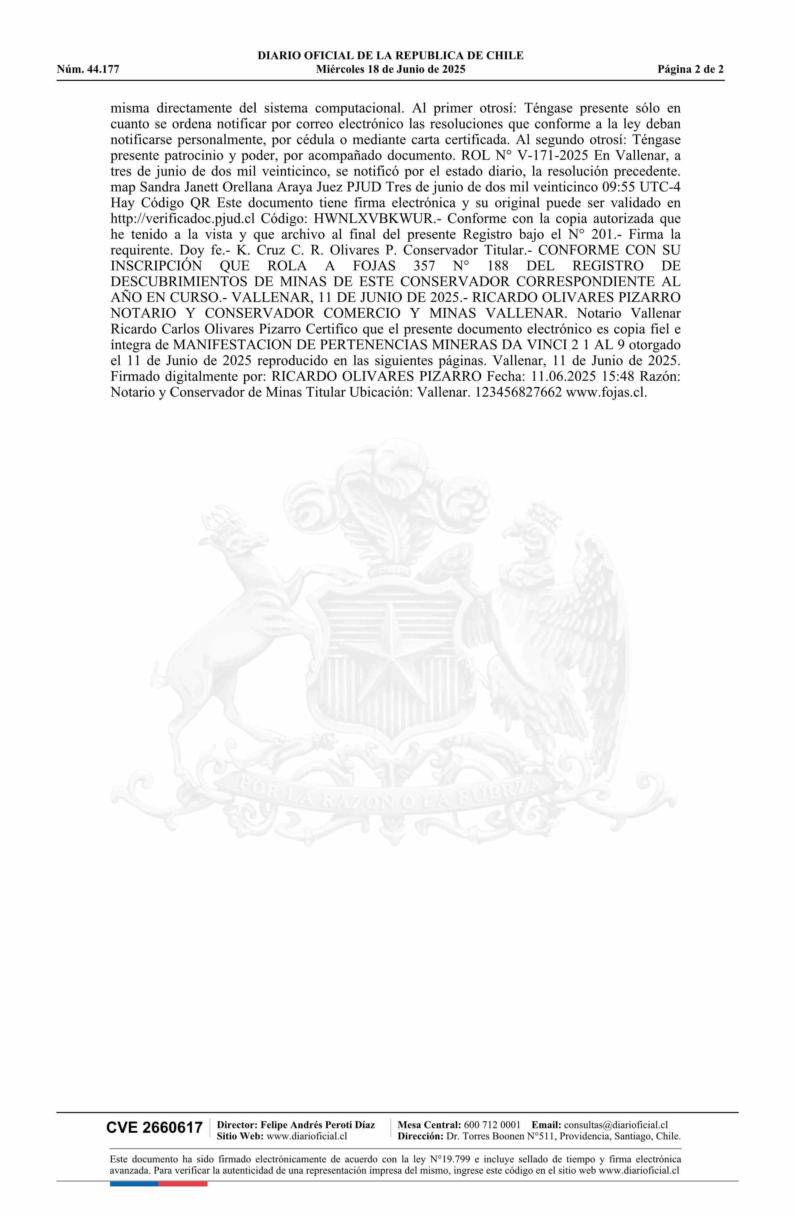 DA VINCI 2 1 AL 9 / Compañía Minera del Pacífico S.A. 18-06-2025 DIARIO OFICIAL CHILE - BOLETÍN OFICIAL DE MINERÍA |