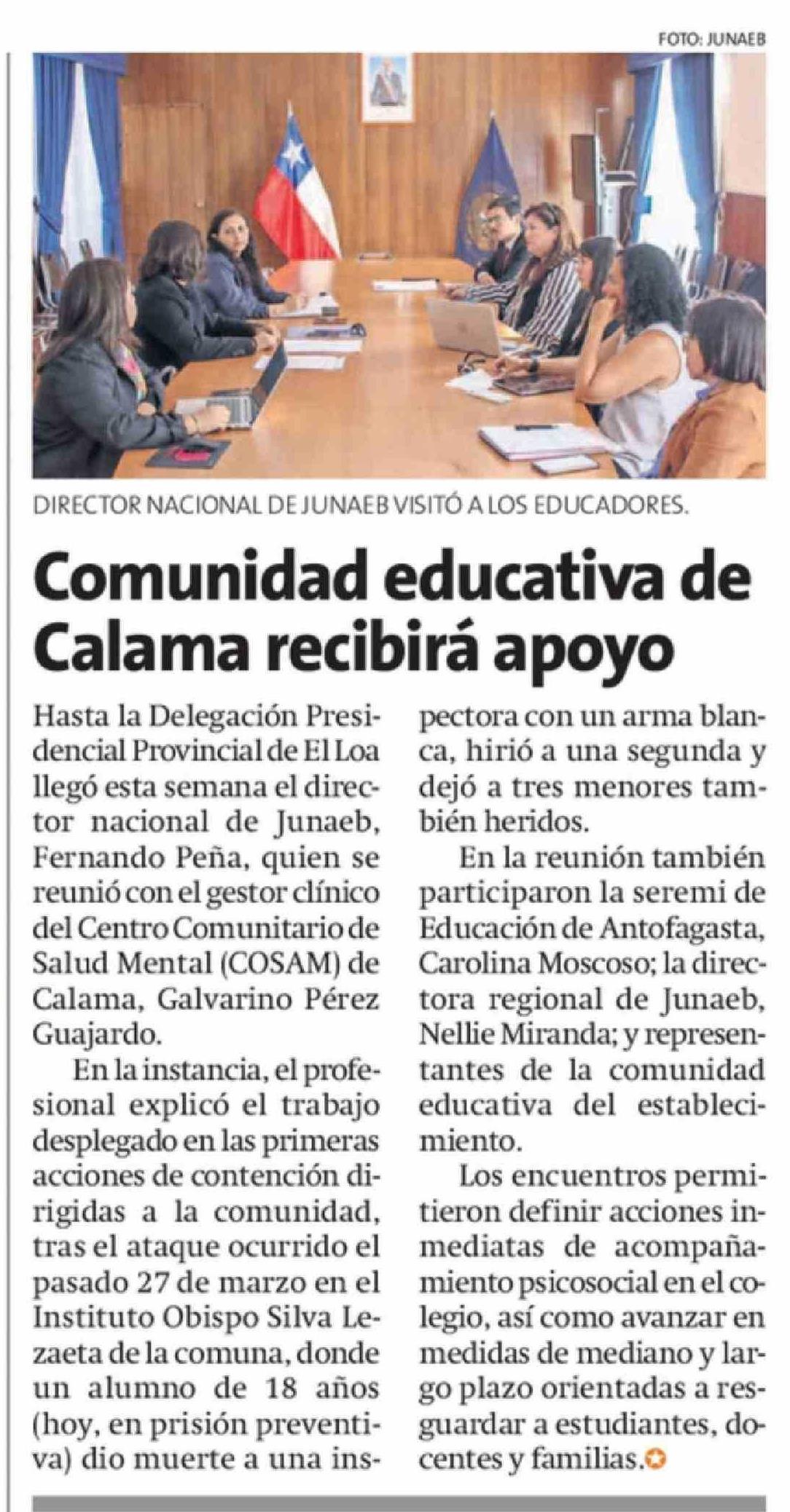 Título: Comunidad educativa de Calama recibirá apoyo