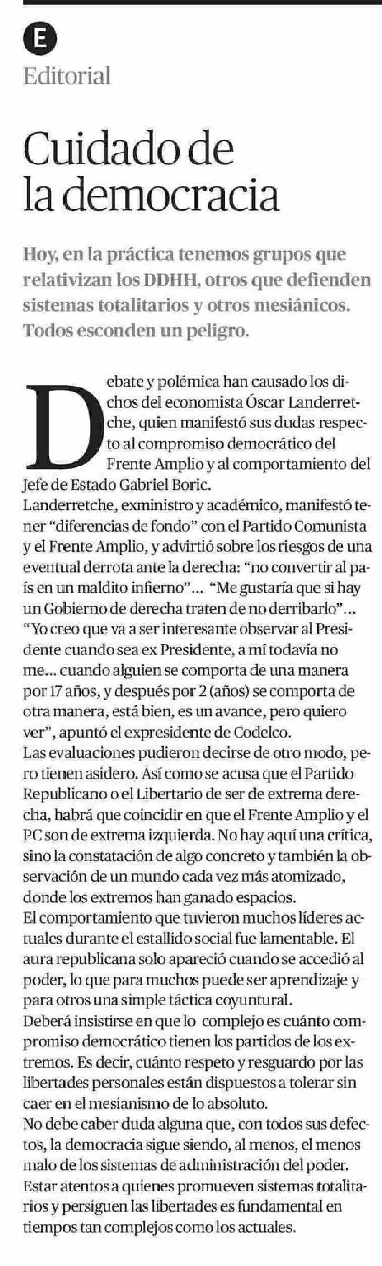 Editorial: Cuidado de la democracia 14-06-2025 El Mercurio de Calama |