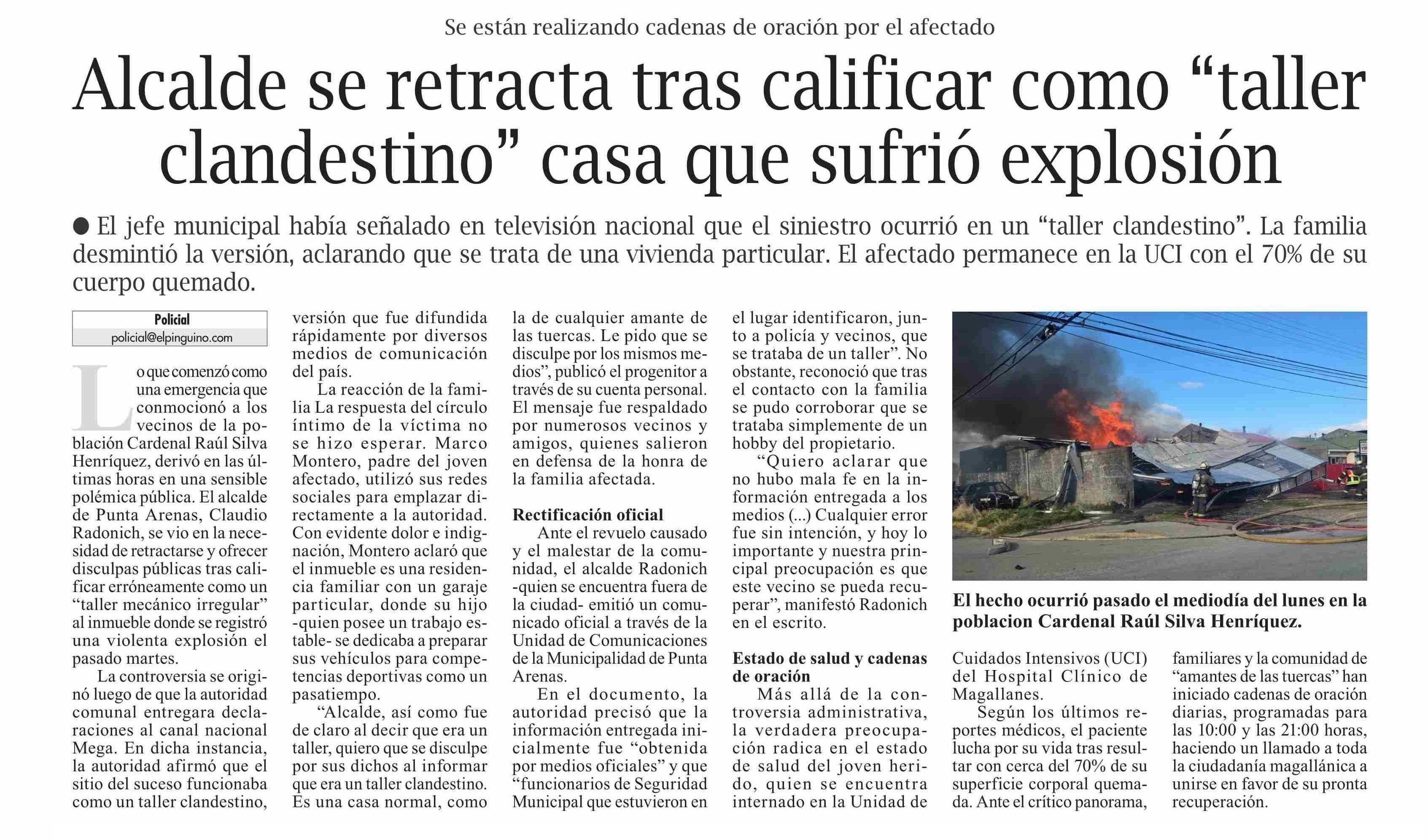 Título: Alcalde se retracta tras calificar como “taller clandestino” casa que sufrió explosión