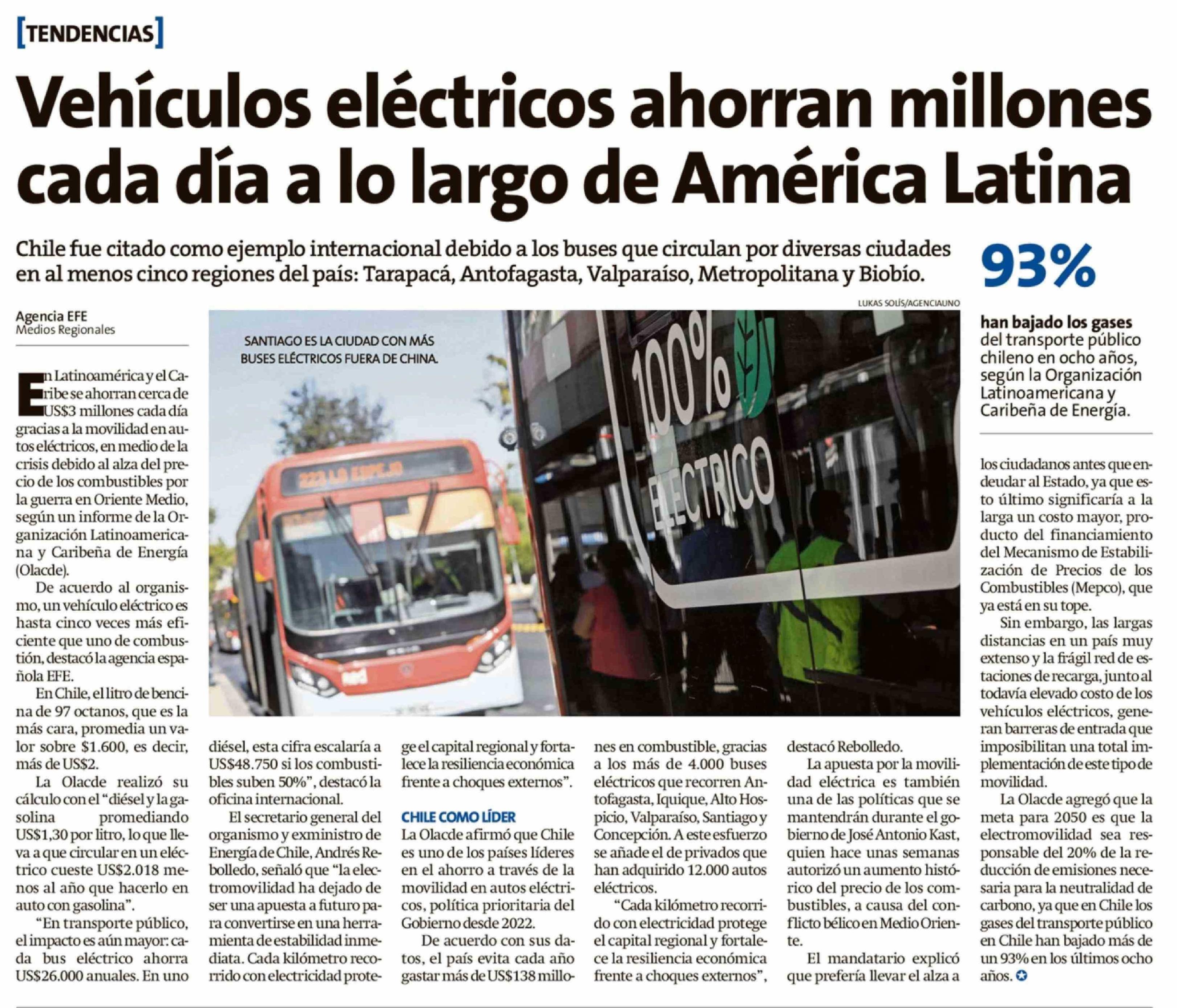 Vehículos eléctricos ahorran millones cada día a lo largo de América Latina 21-04-2026 La Estrella de Chiloé |