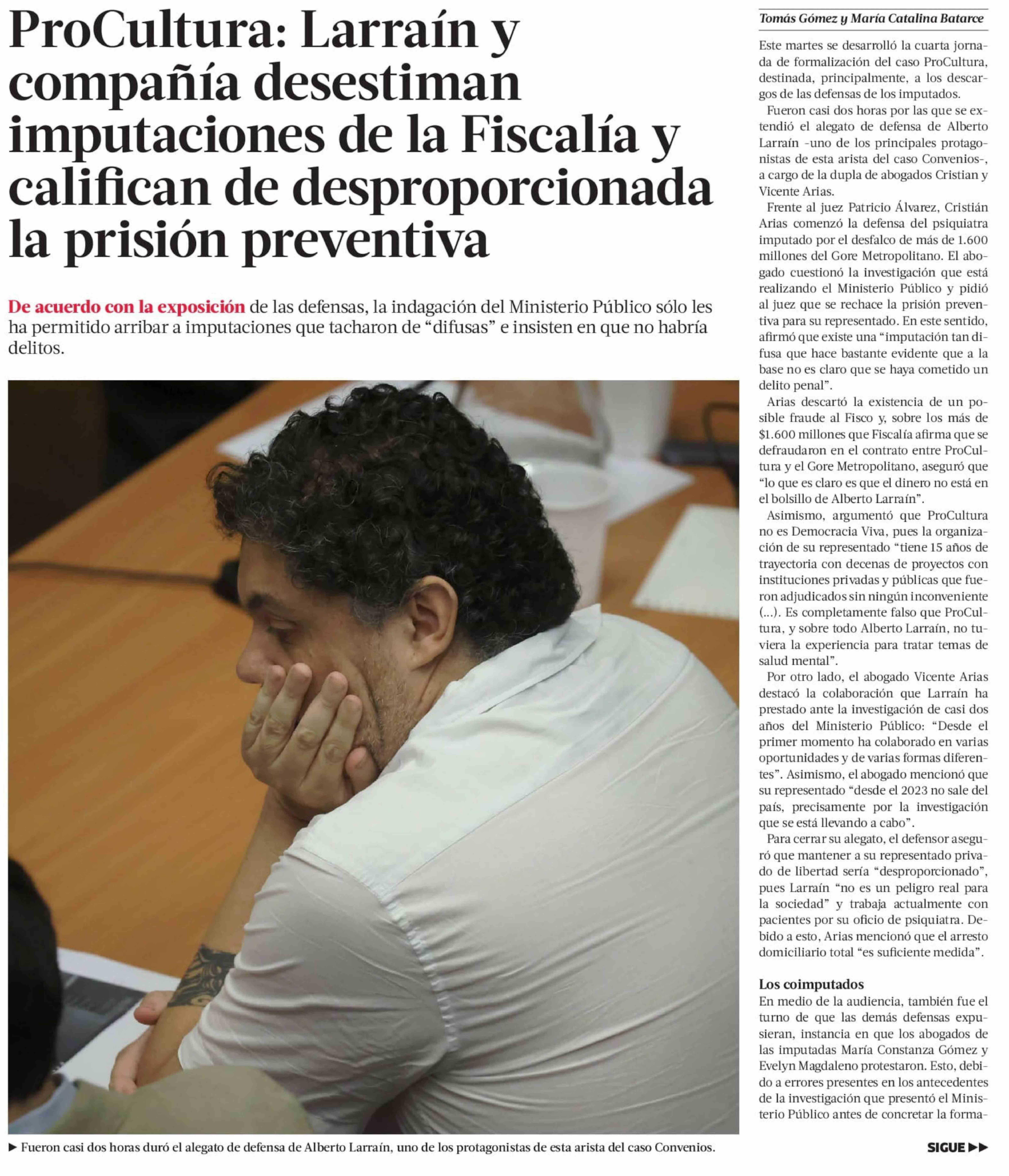 ProCultura: Larraín y compañía desestiman imputaciones de la Fiscalía y califican de desproporcionada la prisión preventiva 04-02-2026 La Tercera |