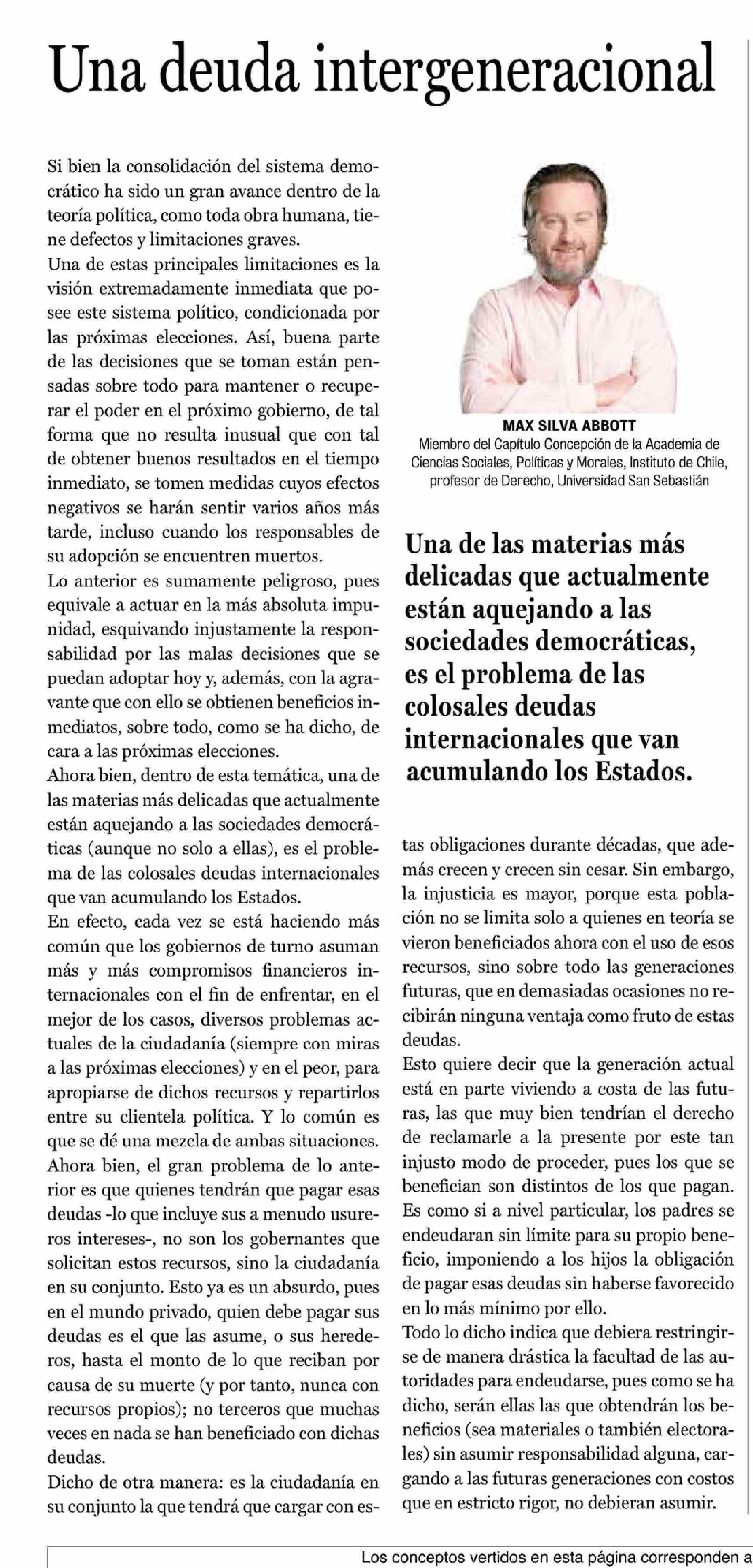 | Título: | Columnas de Opinión: Una deuda intergeneracional |